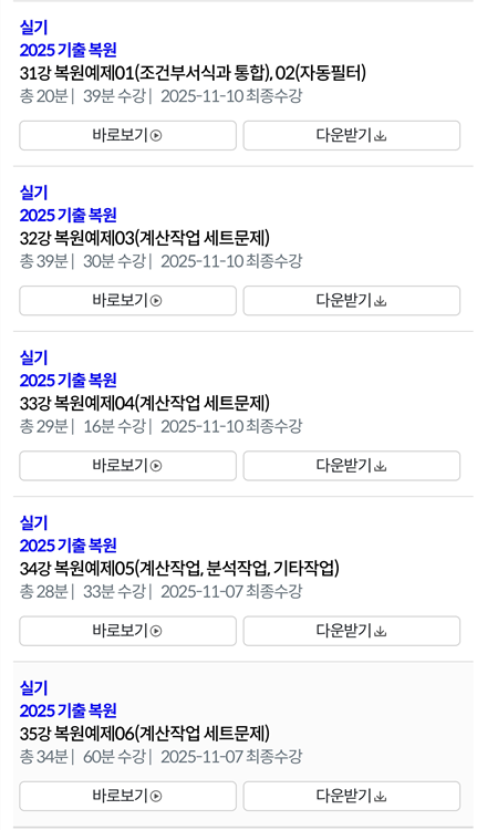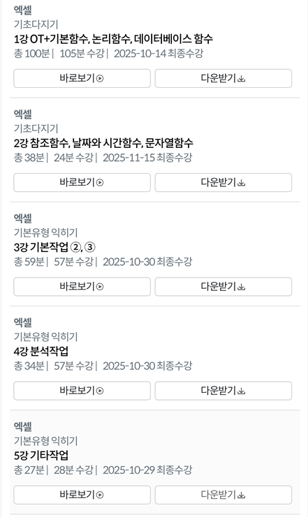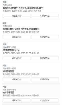 저는 이전부터 컴활을 응시해왔던 터라 제가 필요한 부분(액세스 개념, 최신기출유형, 기출복원)의 강의만 골라 들었습니다.