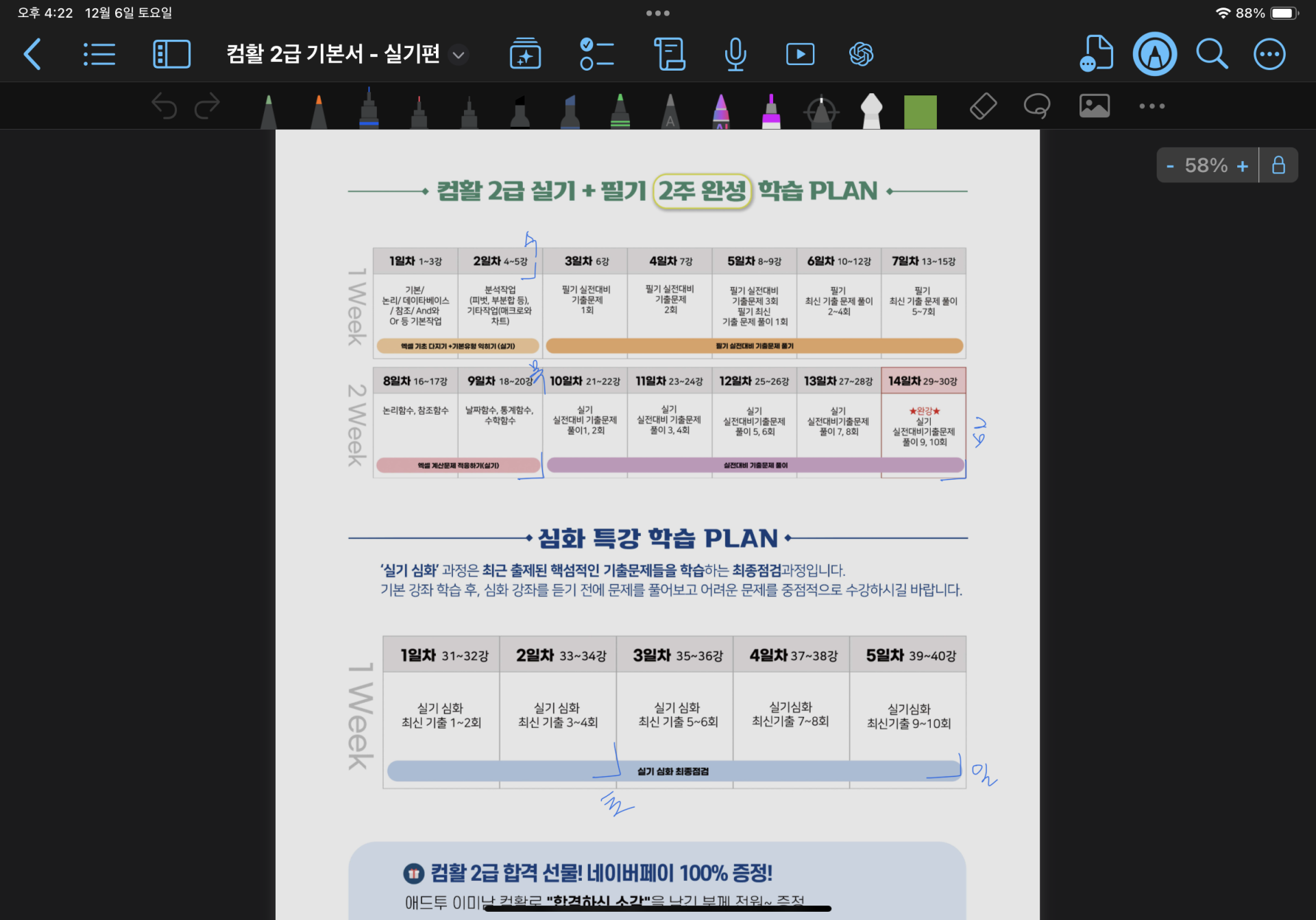요즘에는 무거운 실물교재를 들고 다니는 것이 더 부담되는 것 같습니다. 태블릿에 pdf 파일을 넣어 집,카페,도서관 등등 여러 곳에서 공부할 수 있으니 더 효율적입니다.