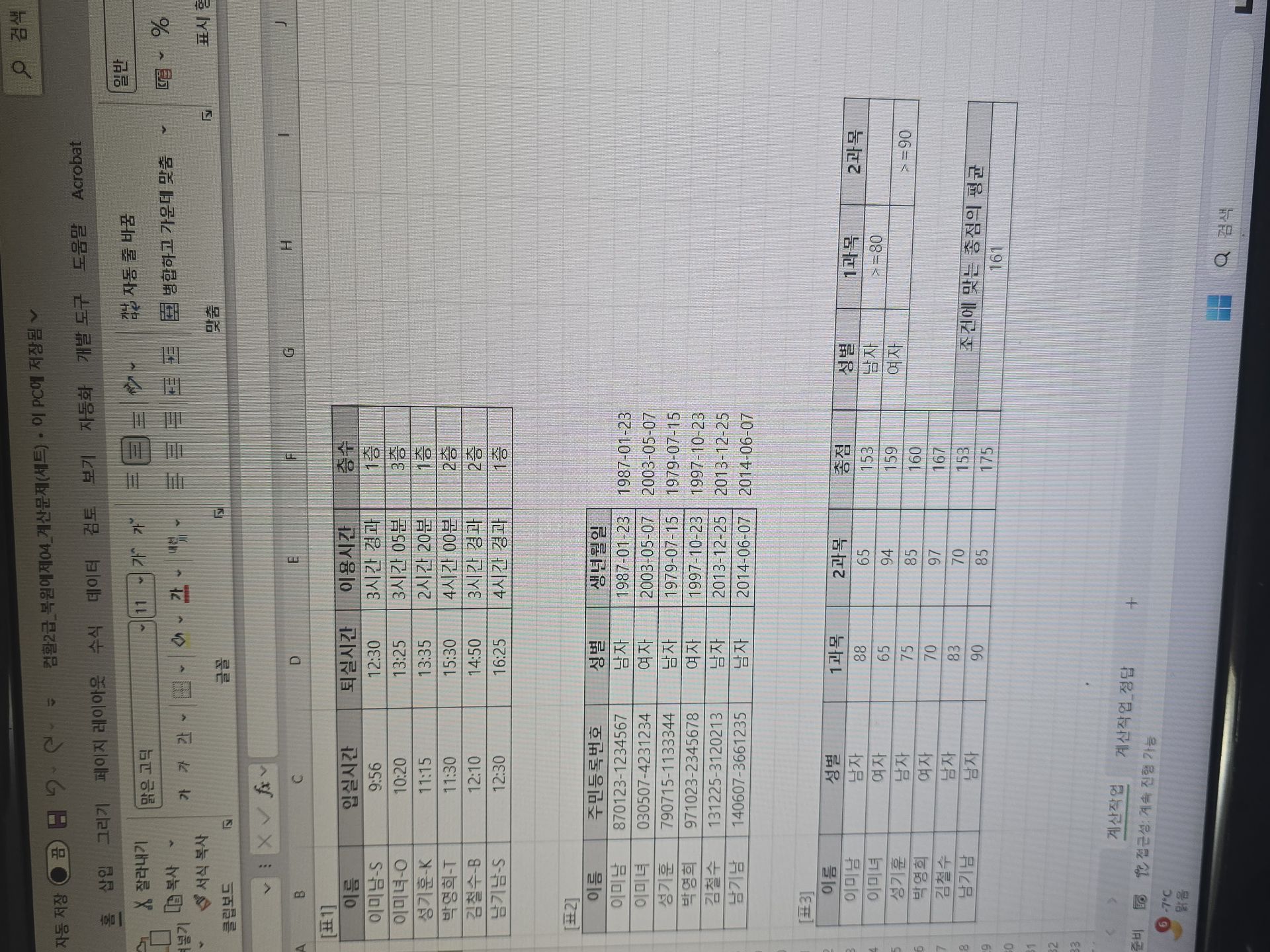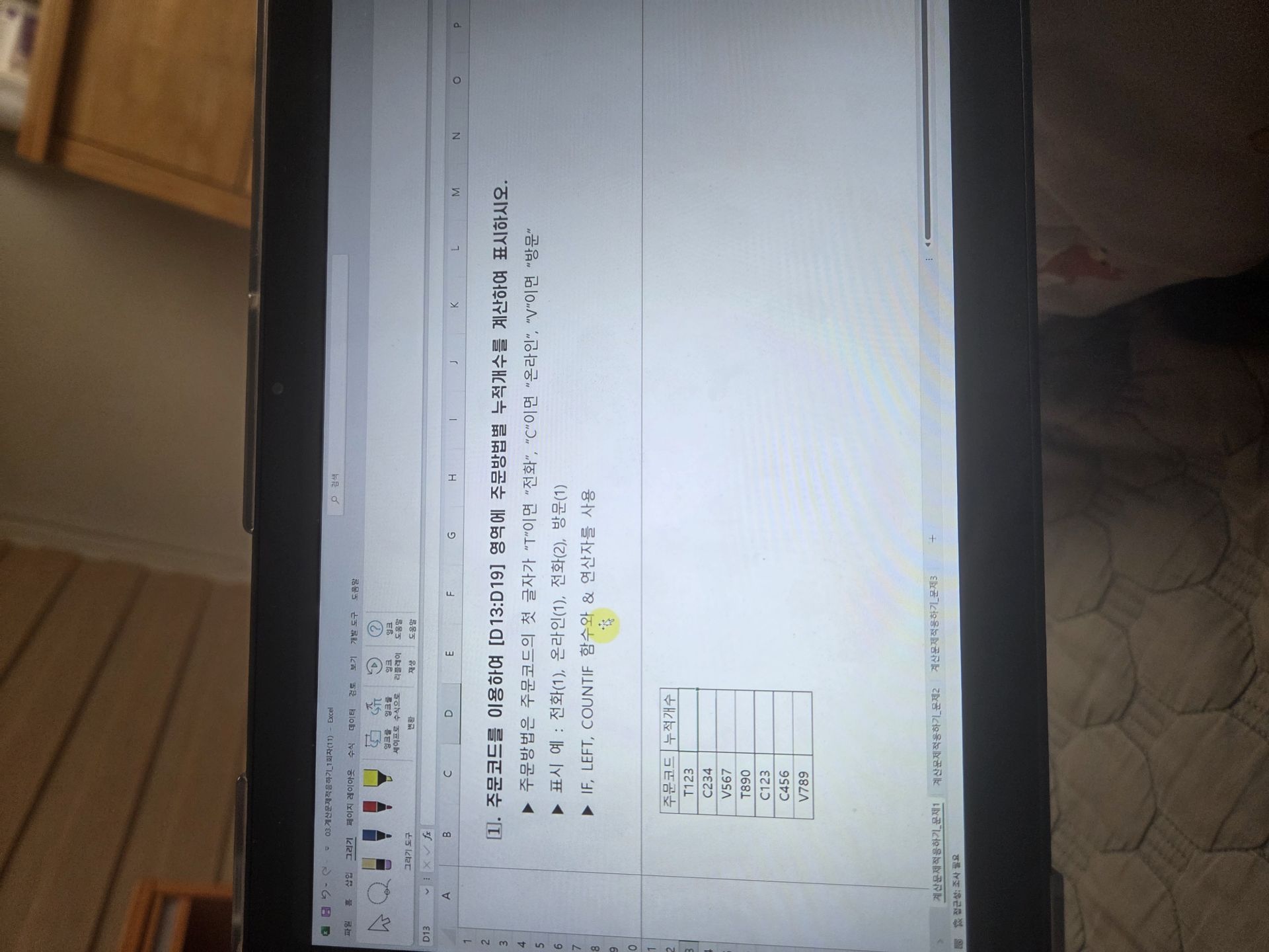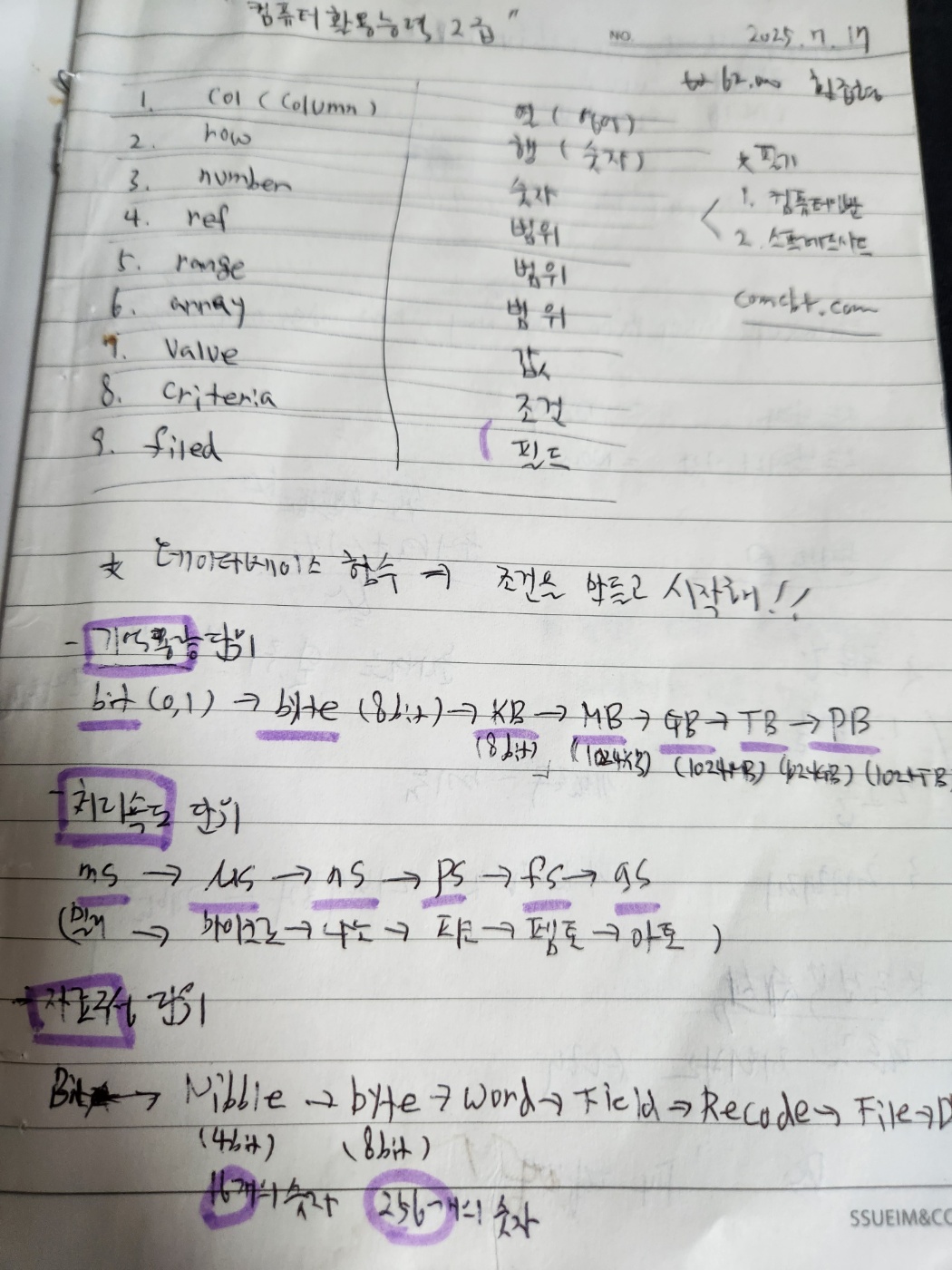 kaka**** / 2026-01-25 애드투 잘생긴이미남 선생님의 강의에서 지금까지 배운 엑셀 기초다지기와 기본 유형을 익히고 실제로 컴활 문제에 나오는 계산 문제들을 풀어보는 시간을 가졌습니다! 계산 문제 풀때 함수들을 여러개 혼합해서 각 문항별로 써서 구해야하는 게 너무 어렵네요,, 계속해서 복습해야 할 것 같습니다 그래도 헷갈리는 부분이나 어려운 부분들을 계속 다른 문제 예시를 통해서 반복적으로 학습하니까 좀 나은 것 같습니다..! 엑셀 기본내용은 끝났구 엑세스도 화이팅해보겠습니다!! 요 내용들은 강의 들으면서 기억해야 할 부분 정리해 놓은 것입니다! COL 열(영어)옆으로 가는 거, ROW 행(숫자) 밑으로 가는 거, NUMBER, REF 범위=rank.eq, RANGE 범위=countif, ARRAY 범위, VALUE, CRITERIA 조건, FIELD, TEXT 단어 확실히 알기! count는 숫자만 세줌 counta는 비어있지 않으면 다 센다(문자+숫자까지) 순위구하기는 rank.eq 안 써주거나 0써주면 내림차순1써주면 오름차순 예를 들면 출석부 ㄱ~ㅎ 셀은 tab탭 눌러서 속성 보기 상대참조, 절대참조 이해하기 는 ~제외하고 값 찾으라 논리함수는 조건 if 데이터베이스와 고급필터의 경우 조건 만들고 시작하라 데이터베이스 함수-> DSUM, DAVERAGE, DCOUNT, DCOUNTA, DMAX, DMIN DSUM(data_base, field, criteria) 지정한 조건에 맞는 데이터베이스에서 필드 값의 합을 구한다 필드에 ref/range/arrange 없으면 필드만! 숫자는 오른쪽 정렬, 문자는 왼쪽 정렬 데이터베이스함수가 엑세스의 메인 도메인 함수로 바꿔나옴 =DSUM("필드명","원본","조건") 표에서 내가 원하는 값을 구하지 못하지만, 옆에 있는 표를 참조하면 결과를 가지고 올 수 있는 것 VLOOKUP, HLOOKUP, LOOKUP, XLOOKUP LEN 텍스트 문자열 내의 문자 개수를 구한다. 띄어쓰기도 포함 문자열 함수 통해 나온 함수는 한번 의심해보기 문자열 함수 통과하면 문자로 인식 숫자로 바꾸고 싶으면 *1붙이기 MID(text,start_number,몇글자 바꿀거다) REPLACE(old_text, start_num, num_chars, new_text) 텍스트의 일부를 다른 텍스트로 바꾼다 SUBSTITUTE(text, old_text, new_text, [instance_num])텍스트 중의 old텍스트를 찾아 new text로 바꾼다 IFS 함수는 하나 이상의 조건이 충족되는지 확인하고 첫번째 TRUE조건에 해당하는 값 반환 -> 여러 중첩된 IF문 대신 사용할 수 있고 여러 조건을 사용해도 읽기가 더 쉽다. SWICH함수는 값의 목록에 대한 하나의 값(식) 계산하고 첫번째 일치하는 값에 해당하는 결과 반환 일치하는 항목이 없는 경우 선택적으로 기본값을 반환한다.