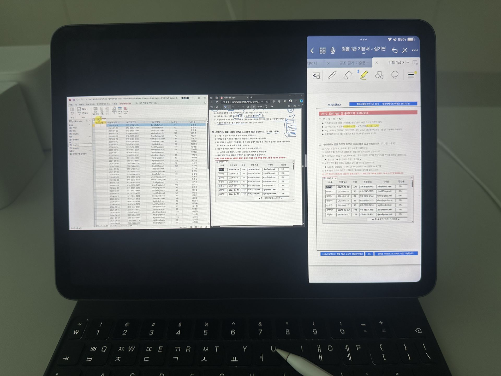 nave**** / 2025-06-01 BEST #필기+실기 컴활 인강 수강후기! ⭐ 애드투에서 이미남 교수님의 컴활 1급 필기, 실기 강의를 듣게 되었습니다. 저는 사실 혼자서 독학을 해보려고 컴활 필기를 2번이나 도전했던 상태였는데요. 제 나름대로 열심히 공부했음에도 불구하고 엄청난 점수 차이로 번번히 낙방하고 말았습니다. 마지막 동아줄이라도 잡는 심정으로 이미남 교수님의 강의를 듣게 되었습니다. 이미남 교수님은 본인이 강조하신 대로 미남(?) 이시고, 목소리와 발음이 매우 훌륭하십니다. 설명도 초보자가 알아듣기 매우 쉽게 디테일하게 잘 해주십니다. 엑셀의 계산 문제들이 가장 자신없는 부분이었는데 이미남 교수님의 강의를 들을 수록 이해도가 차근차근 쌓여가는 느낌이 들었습니다. 매우 체계적이고, 꼼꼼한 커리큘럼을 가지고 있습니다. 초보자라면 이미남 교수님의 컴활 인강을 강추합니다~!!! 교재 파일도 PDF로 제공해주셔서 별도의 실물 교재 구매 없이, 테블릿 피씨에 옮겨 편하게 공부할 수 있었습니다