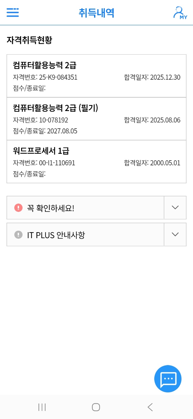 kaka**** / 2026-01-12 BEST 컴활2급 자격증 인강 수강후기!! 저는 40대 후반 주부입니다. 방학때 빈둥빈둥 놀구 있는 아이들(대학생2명)에게 동기 부여가 되기 위해 컴활을 같이 도전해보자 시작을 했습니다. 물론 합격시 포상을 걸었지요. 요새 인강이 워낙 잘 되어있어 어느 강의를 들을까 고민하다 "잘생긴 이미남" 선생님의 강의가 귀에 쏙 들어 오더라구요. 교재구매 및 필기+실기 100%환급형을 신청해서 2025년 7월 공부를 시작하였습니다. 한번에 붙자! 계획을 세워 공부했습니다. 2주 완성 학습 PLAN을 목표로 시작하였으나, 1일차(1~3강)부터 2일차(4~5강)가 그렇게 안 넘어 가더라구요. 처음엔 필기를 보는데 왜 실기기초를 하지? 의구심도 들었는데 기본 엑셀의 개념 및 기초가 쌓이니 쉽게 필기가 와 닿더라구요. 실기기초 및 필기 완강 후 comcbt.com 에서 제공하는 문제를 2~3개 풀고 무난히 합격했습니다. 그래서 필기는 한번에 PASS!! 필기 합격 후 실기 공부 돌입~ 먼저 강의를 3~4개 듣고, 그 이후 실전 돌입 하였습니다. "잘생긴 이미남 선생님의 귀에 쏙쏙 들어오는 명강의" 중 조건부 서식 F4 땅땅!!, 고급필터와 데이타베이스 함수는 조건을 만들고 시작해야 해! 는 절대 잊쳐지지 않을 것 같습니다. 사실 실기는 붙을 듯 하면서 몇 차례 고배를 마셨습니다. 준비가 덜 되서 그런지 늘 시간이 부족했습니다. 합격자 발표 뜨자마자 떨어지면 재접수를 바로 눌러 긴장감을 늦추지 않았습니다. 강의를 3번 이상 완강한 거 같습니다. 2025년 12월 드디어 합격!! 실기 합격의 비결은 1. 강의 최소 2번이상 완강하기 2. 시간 배분 잘하기 3. 안 풀리는 문제, 풀릴 것 같은 문제 계속 붙잡지 말고 넘기기. 인거 같습니다. 총 공부기간 5개월 걸렸네요.. 20대~30대 친구들이 많이 컴활 시험에 도전할텐데 끈기있게 하면 꼭 좋은 성과가 있을거라 생각합니다. 열심히 준비하는 친구들 모두들 홧팅 응원해요~