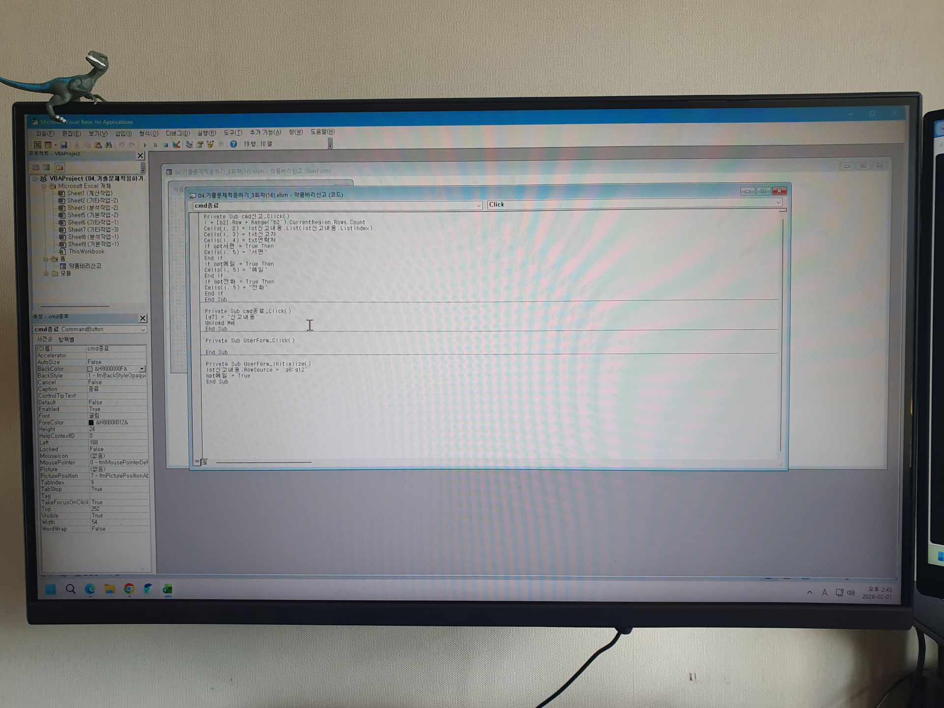 kaka**** / 2026-02-01 애드투 이미남 강의를 들으며 엑셀을 끝마치고 이번부터는 엑세스의 기초에 대해 배우기 시작했습니다! 학습 내용 요약 ->데이터베이스 관리프로그램 - 데이터를 잘 관리(수정, 삽입, 삭제, 검색)하고 원하는 형식으로 보고서를 만들 수 있도록 도와 줌 < 데이터베이스> - 특정조직이 업무 수행하는데 필요한 관련성 있는 자료들의 집합체 - 데이터를 저장하는 공간 - 테이블 : 데이터를 효과적으로 관리하기 위한 양식, 표 - 필드 이름 : 테이블에서 열 데이터 이름 - 데이터 형식 : 필드에 입력될 데이터 형식 - 레코드 : 테이블에서 행 데이터 - 디자인 : 테이블 양식 - 쿼리 : 테이블에서 새로운 필드를 만드는 질의 - 폼 : 데이터베이스 내용을 검색해서 볼 수 있는 화면 -보고서 : 데이터 베이스 내용에서 필요한 데이터를 출력하는 -필드에 입력하는 값 제한 0 0이 아닌 값 입력 0 or >=100 0 또는 100 이상인 값 입력 >=1 and