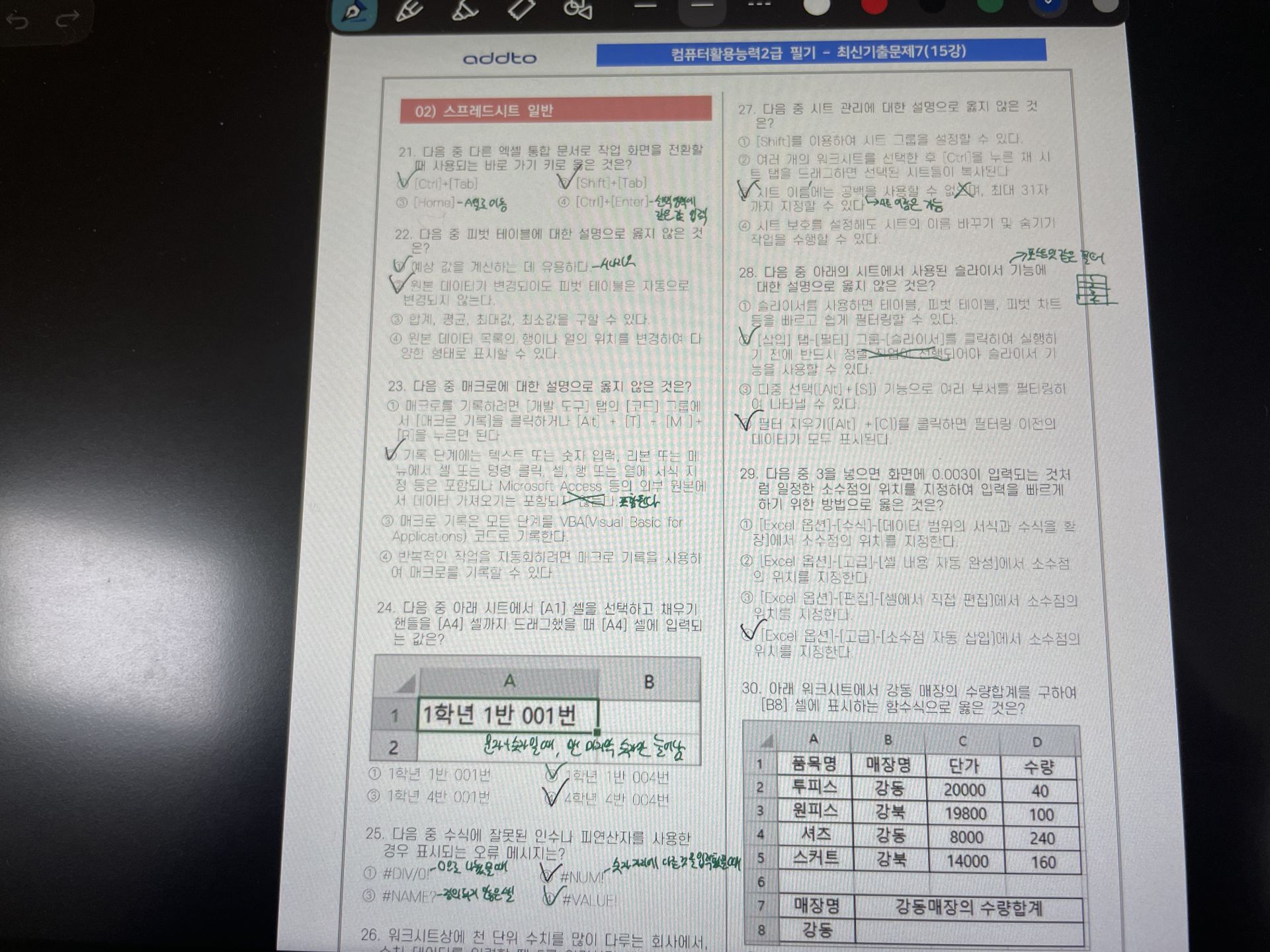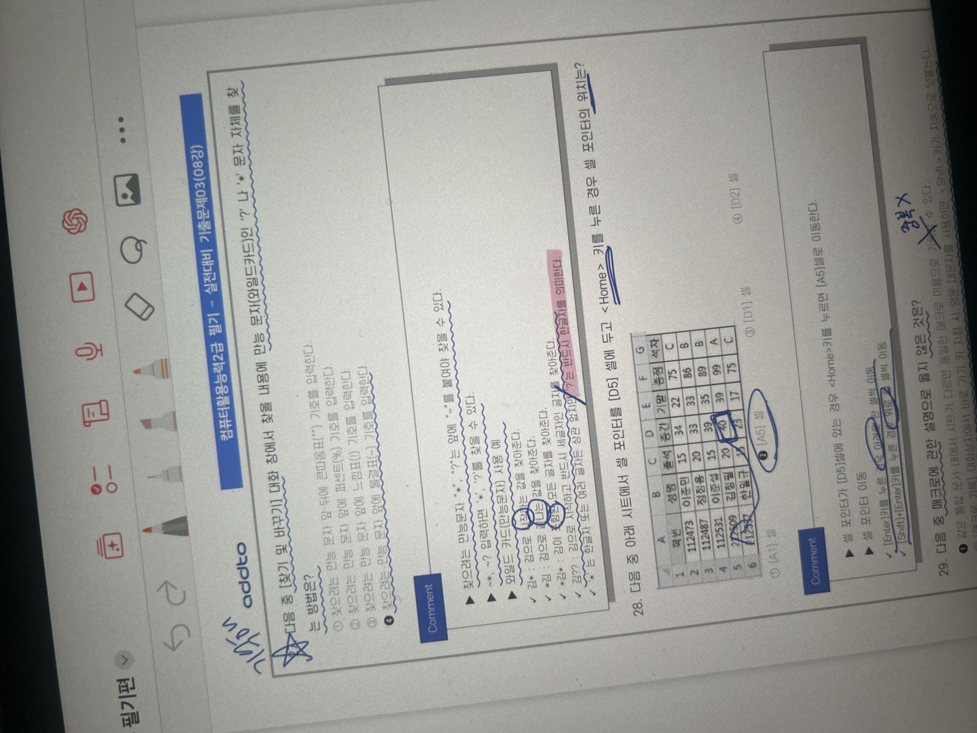 확실히 실기 문제를 먼저 풀어보고 필기를 시작하니까 엑셀 이해도가 올라갔고 워크시트 관련 문제는 쉬웠던거같아요.