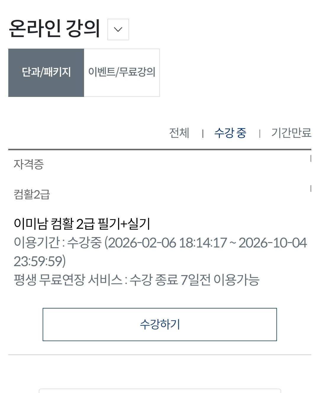 중간에 일이 생겨 인강을 아예 못듣는 날이 있었는데 수강 정지가 가능하여 수강 잔여일 유지후 들을 수 있었어요