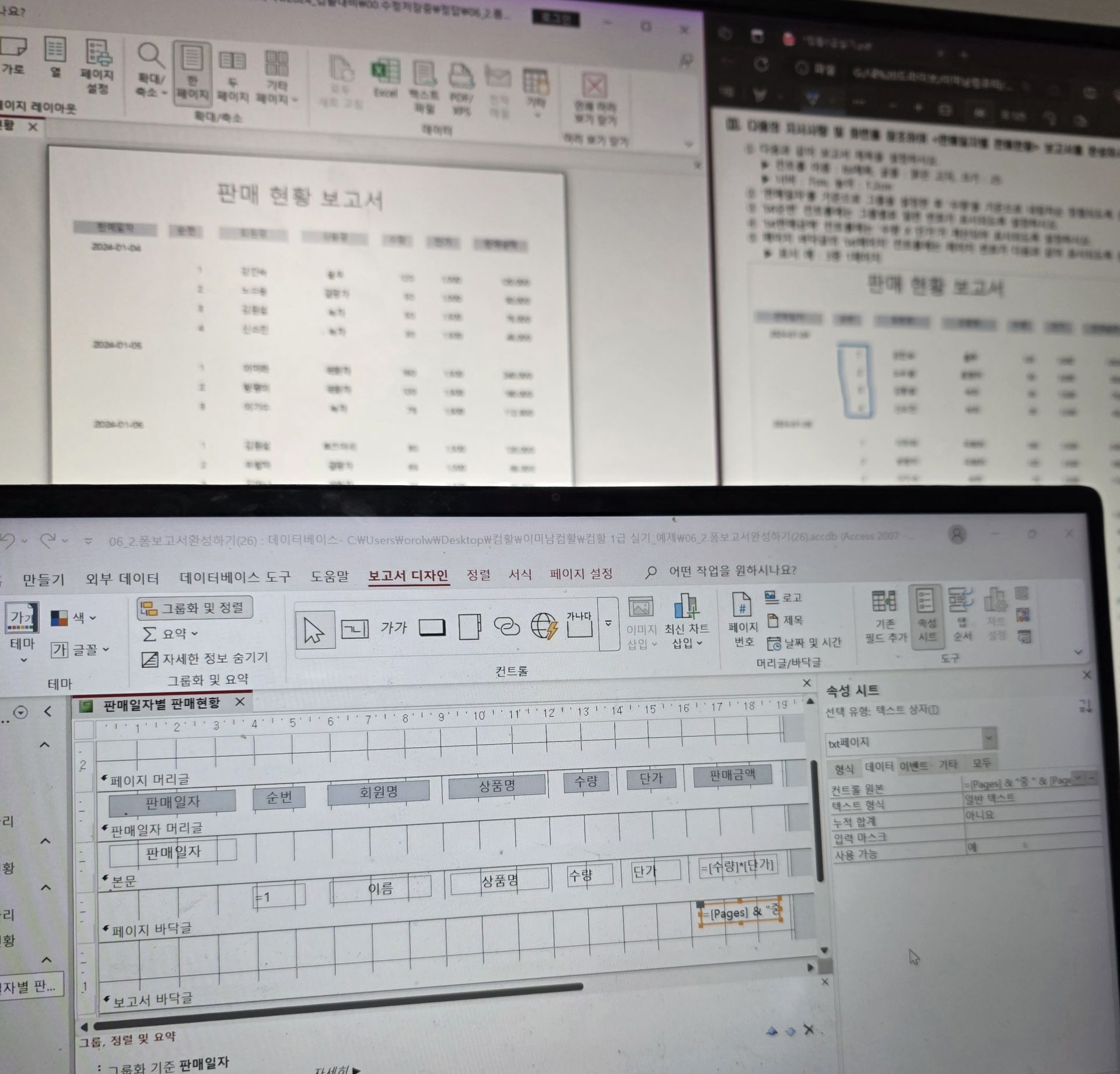 또한 액세스는 처음 접하는 프로그램이라 조금 어렵게 느껴지기도 했지만 테이블, 쿼리, 폼, 보고서의 구조를 이해하고 직접 만들어보는 과정을 통해 데이터베이스의 기본 흐름을 익힐 수 있었습니다.