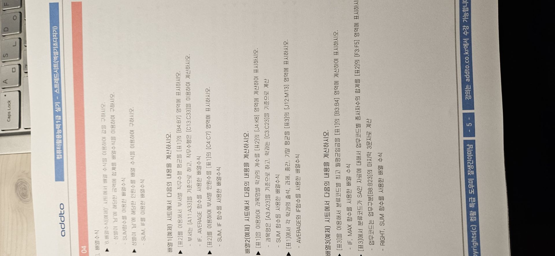 컴활 1급 인강 실기 학습영역 애드투 이미남 선생님 부스터 기출로 실기 시험을 도전하고 있다.