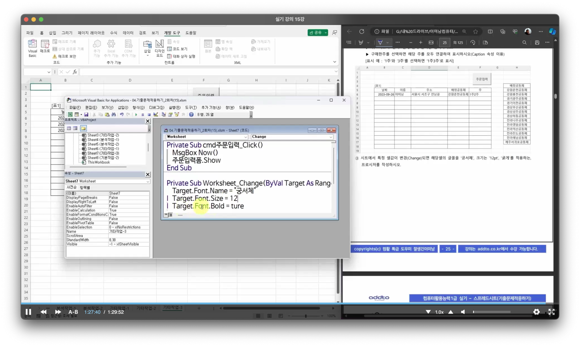 '애드투 이미남 컴활'의 강의 1강~6강을 먼저 수강했는데요. 강의 듣고 교재에 필기할 부분은 필기하면서 엑셀로 따라하는 식으로 공부했어요! 문제 먼저 풀지 않고 실기 기초 강의를 먼저 들으니 문제 풀 때 이해가 더 잘 되더라구요.