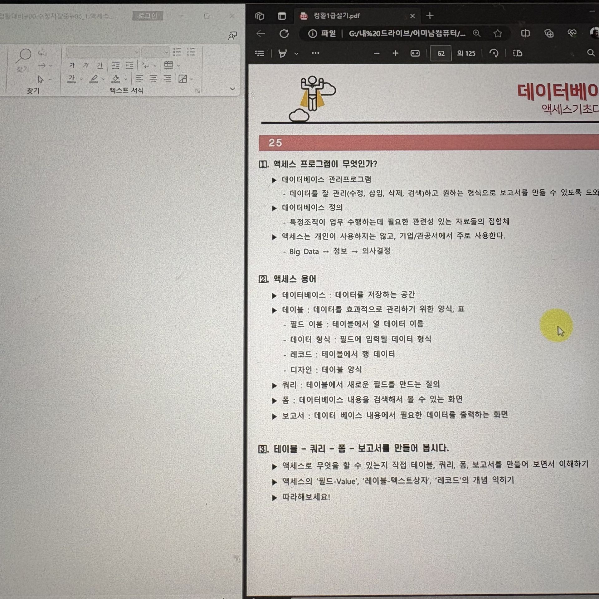 실제로 1급을 독학으로 공부하다가 엑세스가 너무 어려워서 포기했어요ㅜㅠ