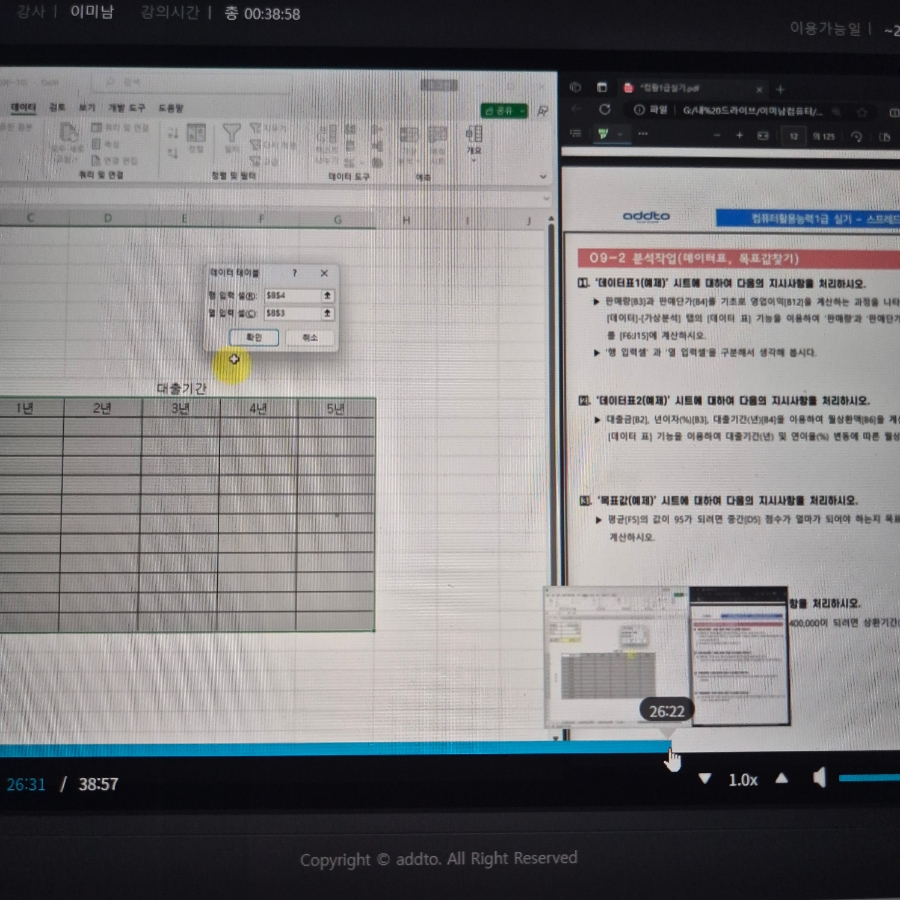 이러한 내용들을 타 인강들과 비교했고 결국 한정된 자원 안에 선택한 건 "애드투 이미남 컴퓨터활용능력 1급 인강"입니다! 주변에 같이 컴활 준비하는 친구들한테도 홍보하고 있고, 타 인강 듣는 친구들의 불편을 토로하는 걸 듣고 있으면 저는 정말 잘한 선택을 했더라고요! 강추강추합니다! -