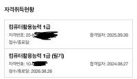 컴퓨터와 친하지 않은 생활과 함께 못본척 미뤄뒀던 컴퓨터활용능력 자격증 취득,