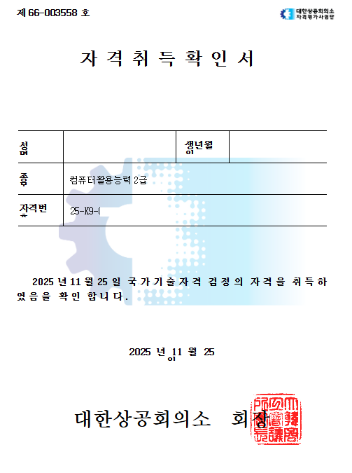 내돈내산! 컴활 1급 필기 실기 합격 후기 - 컴퓨터활용능력 자격증을 단기간에 준비하시는 분들께 조금이나마 도움이 되었으면 하는 마음으로 후기를 정리해본다. 나는 약 2달 안에 자격증을 취득해야 하는 상황에 놓여 있었다. 원래는 컴활 1급을 따는 것이 목표였지만, 준비 기간이 너무 촉박하다고 판단해서 비교적 빠르게 취득할 수 있는 2급을 선택했다. 특히 실기 시험에 대해 주변에서 어렵다는 얘기를 많이 들어서, 처음부터 전략적으로 접근하는 게 중요하다고 생각했다.처음에는 독학으로 해볼까도 고민했지만, 특히 실기 부분에서 막막함이 컸다. 자료도 체계적으로 정리된 걸 찾기가 어려웠고, 혼자서 공부 방향을 잡기에는 시간이 너무 부족했다. 그래서 인터넷으로 검색을 하다가 ‘애드투’라는 온라인 강의 사이트를 알게 되었고,이곳에서 컴활 2급 필기와 실기를 포함한 이미남 선생님 패키지 강의를 수강하게 되었다.< 공부방법 >필기는 평일에 하루 3시간씩 총 5일 동안 집중해서 공부했고, 그 주 주말에 바로 시험을 치렀다. 강의에서 제공하는 PDF 이론 요약집이 정말 핵심만 정리돼 있어서 필기 공부에 큰 도움이 되었다. 이론을 몇 번 반복해서 읽고, 기출문제를 풀면서 감을 익히니 자신감이 생겼다. 실제 시험에서도 강의 내용과 거의 유사한 문제들이 나와서 수월하게 풀 수 있었다.실기 공부는 필기 이후부터 본격적으로 시작했다. 평일 기준 하루 2시간 정도씩 투자해서 약 3주간 꾸준히 공부했다. 실기에서 중요한 것은 기능을 ‘머리로 외우는 것’보다 ‘손에 익히는 것’이라는 걸 강의를 들으며 확실히 느꼈다. 엑셀의 다양한 기능들을 강사님이 차근차근 설명해주셨고, 실습용 파일과 기출문제 풀이를 통해 실전 감각을 키울 수 있었다. 마지막에는 실제 시험 시간에 맞춰 연습도 했는데, 이 과정이 실전에서 시간 관리에 큰 도움이 되었다.개인적으로는 강의 자료 중에서도 PDF 파일이 가장 유용했다고 느꼈다. 깔끔하게 정리된 내용을 보면서 공부하니까 혼자 책을 보며 정리할 때보다 훨씬 효율적이었다. 특히 필기 파트는 이 자료만 제대로 숙지해도 충분히 합격할 수 있을 거라는 확신이 들었다. 실기는 연습용 파일을 여러 번 반복하며 감각을 익혔고, 반복할수록 확실히 속도와 정확도가 올라갔다. 이 강의가 나에게 도움이 되었던 가장 큰 이유는 ‘공부 방향’을 잡아준 점이었다. 혼자 공부하면 어떤 걸 먼저 해야 할지, 어떤 부분에 시간을 더 투자해야 할지 헷갈릴 수밖에 없다. 그런데 강의를 통해 자연스럽게 학습 흐름을 따라가다 보니, 전체적인 큰 그림을 그릴 수 있었고, 불필요하게 시간을 낭비하지 않게 되었다. 단기간에 자격증을 준비하는 사람에게는 이런 학습의 ‘틀’이 무엇보다 중요하다고 생각한다.정리하자면, 컴활 2급은 제대로 된 강의와 학습 자료만 있다면 짧은 시간 안에도 충분히 합격이 가능한 자격증이라는 생각이 든다. 나처럼 단기간에 자격증이 필요한 분들, 혹은 실기에서 막막함을 느끼는 분들께는 온라인 강의 수강이 좋은 선택지가 될 수 있다고 말하고 싶다.혹시 컴활 자격증을 준비 중이라면, 무턱대고 혼자 공부하기보다는 본인에게 맞는 학습법이나 자료를 찾아서 체계적으로 준비해보길 추천한다.