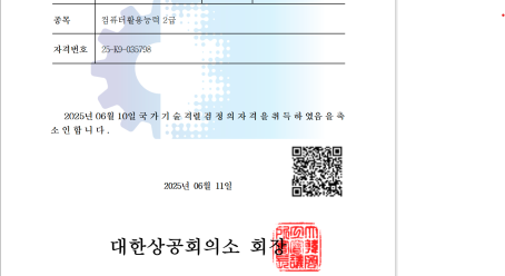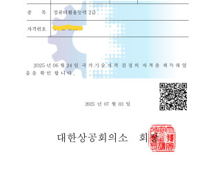 실기 시험 역시 선생님께 배운 방법대로 했더니 여유 있게 마칠수 있었고 한번에 합격이라는 성과를 얻을 수 있었습니다. 이번 경험을 통해 단순히 자격증을 취득했다는 의미를 넘어, 꾸준한 학습과 올바른 가이드의 중요성을 다시 한 번 느꼈습니다. 감사합니다. -