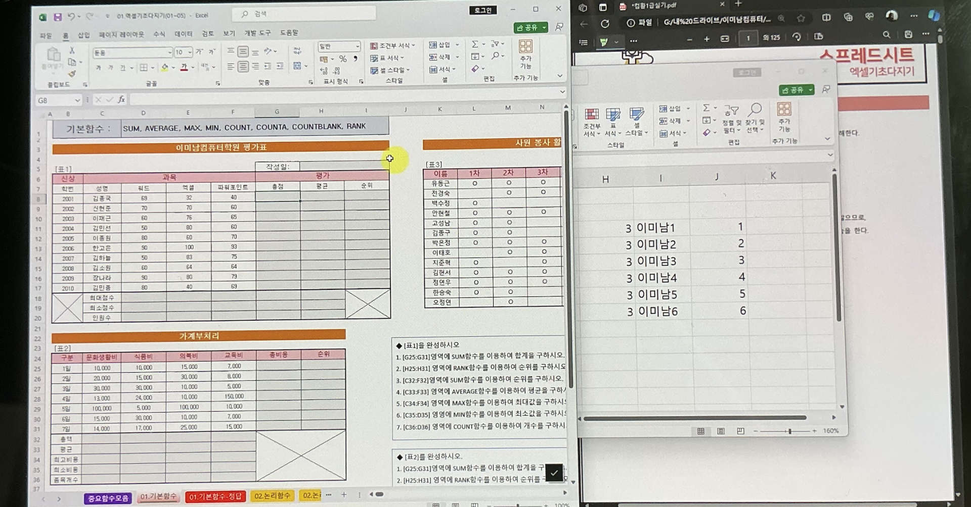 '애드투 이미남 컴활'의 강의 1강~6강을 먼저 수강했는데요. 강의 듣고 교재에 필기할 부분은 필기하면서 엑셀로 따라하는 식으로 공부했어요! 문제 먼저 풀지 않고 실기 기초 강의를 먼저 들으니 문제 풀 때 이해가 더 잘 되더라구요.