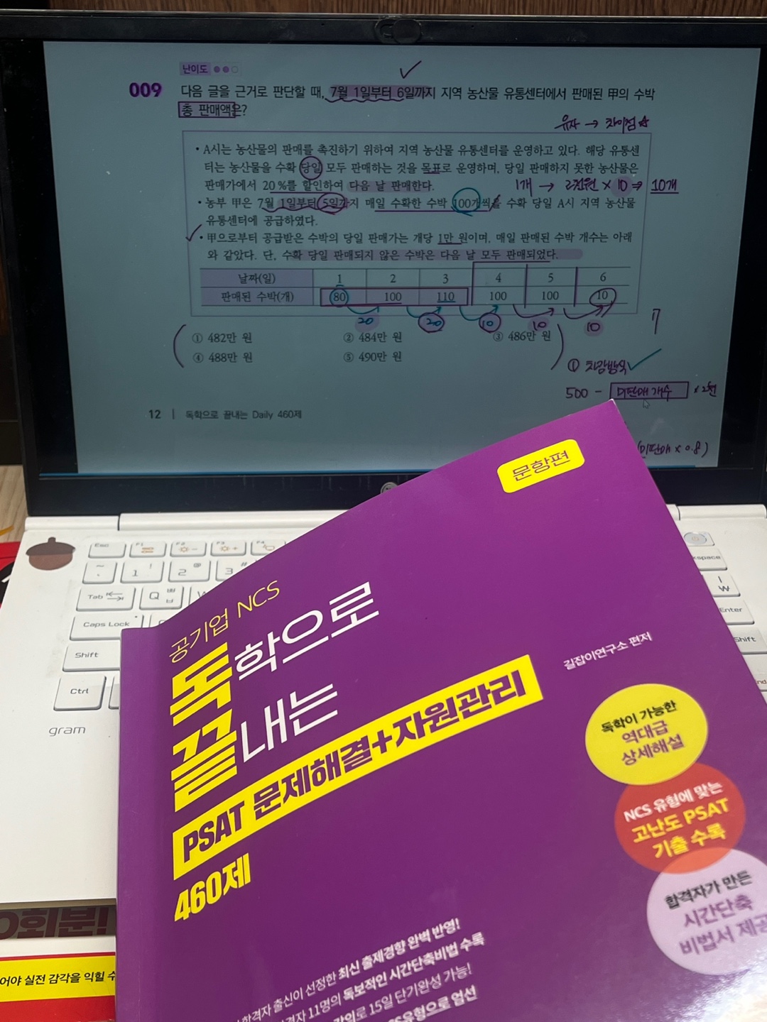 그리고 강의를 듣는데 이해도 더 잘되고 한 번더 머리 속에 각인 시킬 수 있어서 강의를 듣기 잘했다는 생각이 들었습니다. 그리고 특히 수리, 자료해석 부분에서는 어림산하는 방법을 읽히는데 강의 도움을 많이 받았습니다. 수리부분이 늘 약해서 문제를 풀 때 시간이 너무 오래걸렸었습니다. 그래서 수리는 포기해야되나 싶었는데 강의보면서 계산하는 방법을 다시 익히고 차근차근 하니까 그 전보다는 훨 빨라졌습니다. 아직 더 많이 노력해서 학습해야 강사님께서 말씀하신 시간이 걸릴거 같긴하지만 예전에 비하면 많은 발전이라고 생각합니다.