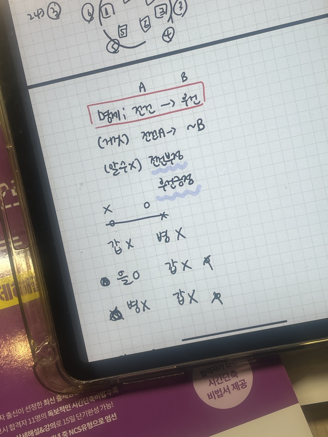 참, 명제 상황판단 문제가 어렵게 느껴지고 항상 어떤 문제집을 봐도 눈으로 그저 읽는 풀이는 이해가 잘안갔습니다! 근데 독끝 인강으로 들으니 저엉말 귀에 쏙쏙 들어오고 한 치라도 딴 생각을 할 슈 없게 만드시는