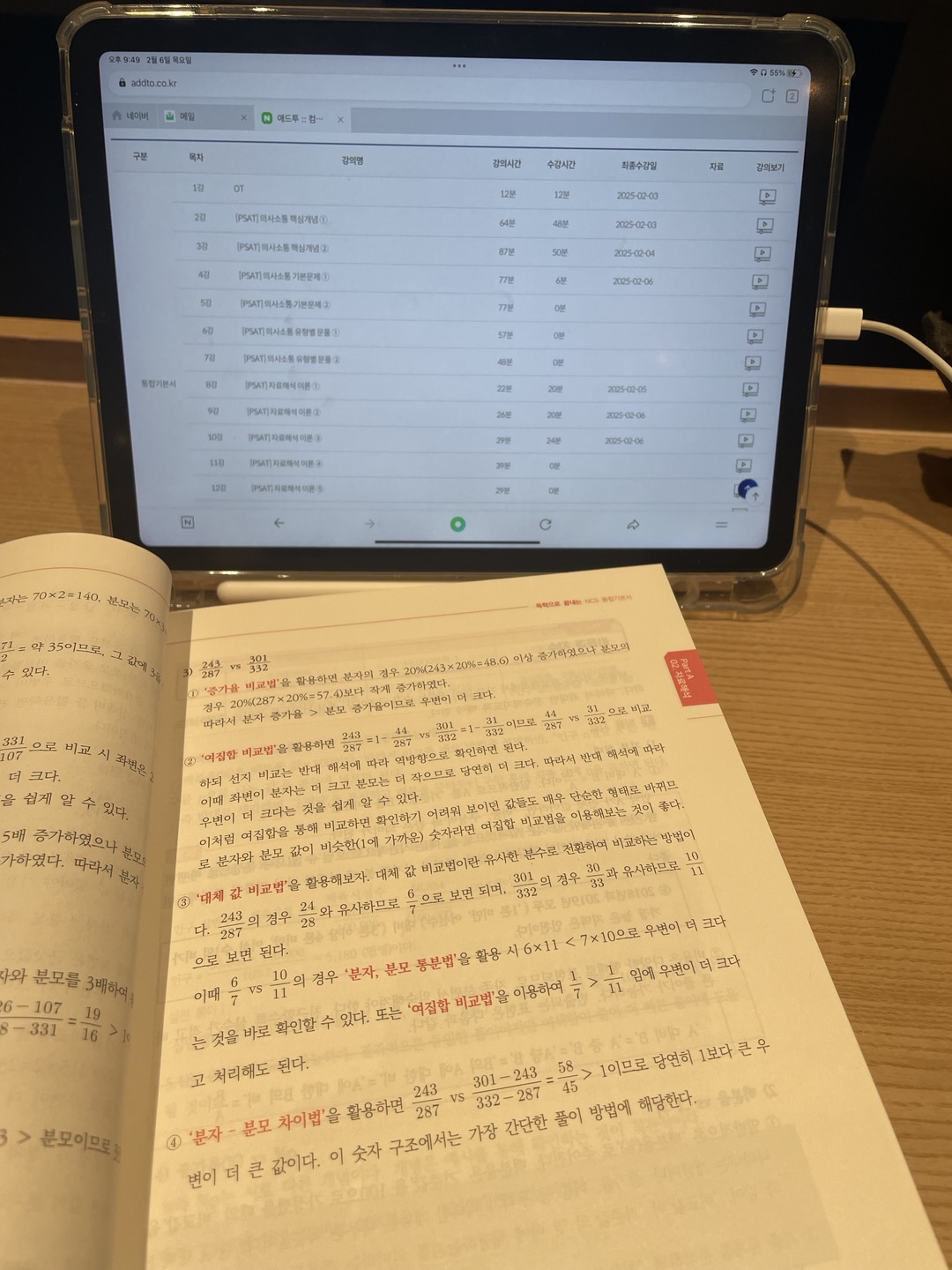 둘째, 박수웅 강사님의 설명이 몹시 상세합니다. 스터디를 통해 무료로 제공받았지만, 역시 무료로 듣기에는 아깝습니다. 피셋을 처음 공부하던 시절 문제풀이에 컴팩트한 연산법을 익히느라 고생하곤 했습니다. 강의를 들어도 수강생 전부가 다 이해할 거라는 듯 뭉뚱그려져 지나갔고, 강의 교재를 사도 강의 없이는 효율적으로 풀이할 수 없게끔 제작된 교재가 많이 접하곤 했습니다. 그런데 박수웅 강사님께서는 수의 대소비교를 아주 기초부터 제대로 떠 먹여 주십니다. 덕분에 네이버 블로그 등 여러 사이트를 전전하며 계산 식이나 풀이 시간을 어떻게 줄일까 고민하지 않아도 되게 되었습니다. 게다가 독끝 교재와 강사님 설명을 함께 하니 기초 학습도, 연습도 계획된 시간 내에 이뤄져서 좋았습니다.