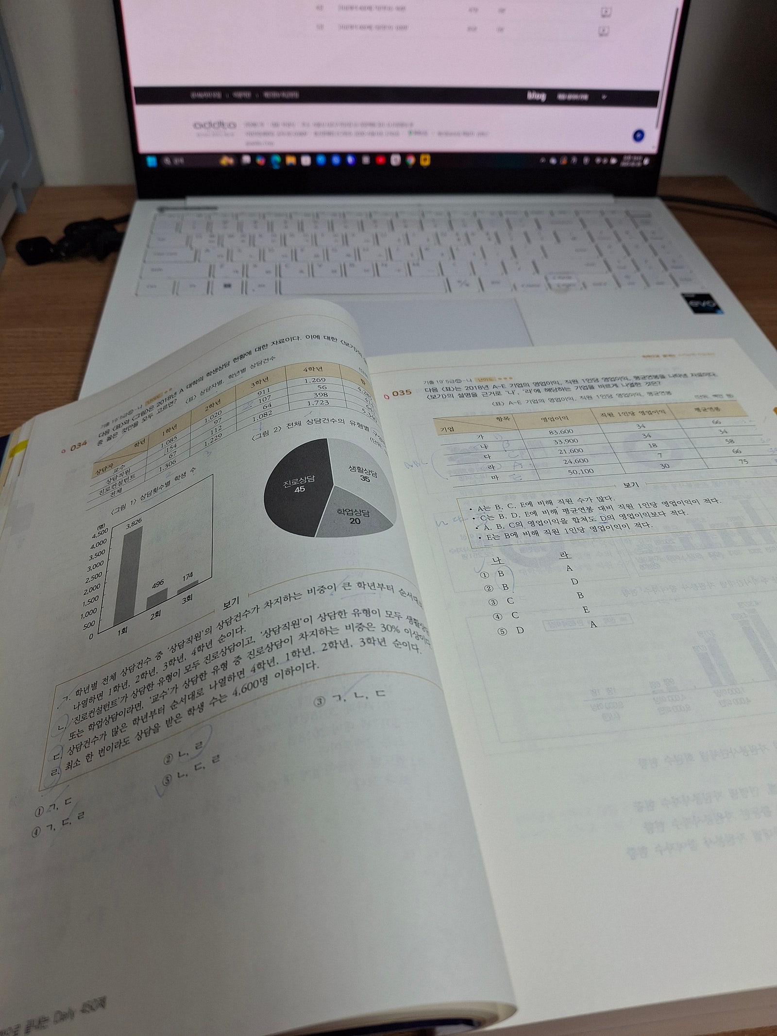 응용수리와 문제해결능력은 혼자 공부하기에는 다소 무리가 있다는 생각이 들었습니다.