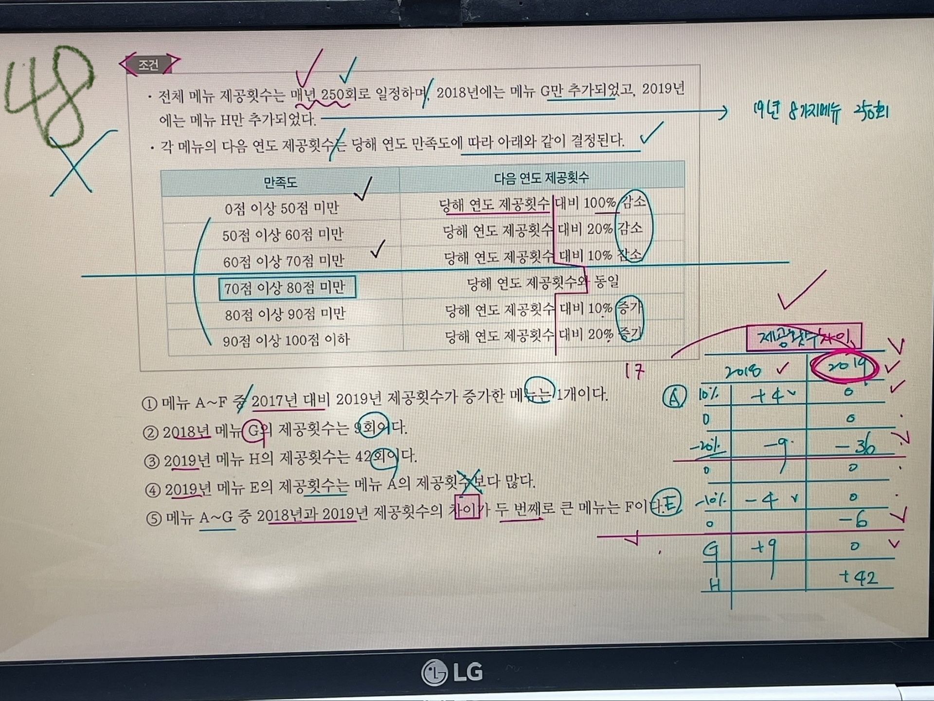 그리고 자료해석 파트도 마찬가지로, 고등학교 이후로 수학을 접해보지도 못한 문과생으로서 진짜 아무리 교재가 잘 돼있어도 이해하기 힘든 부분이 있었는데 강의에서 차근차근 잘 설명해주셔서 정말 도움 많이 받았습니다.