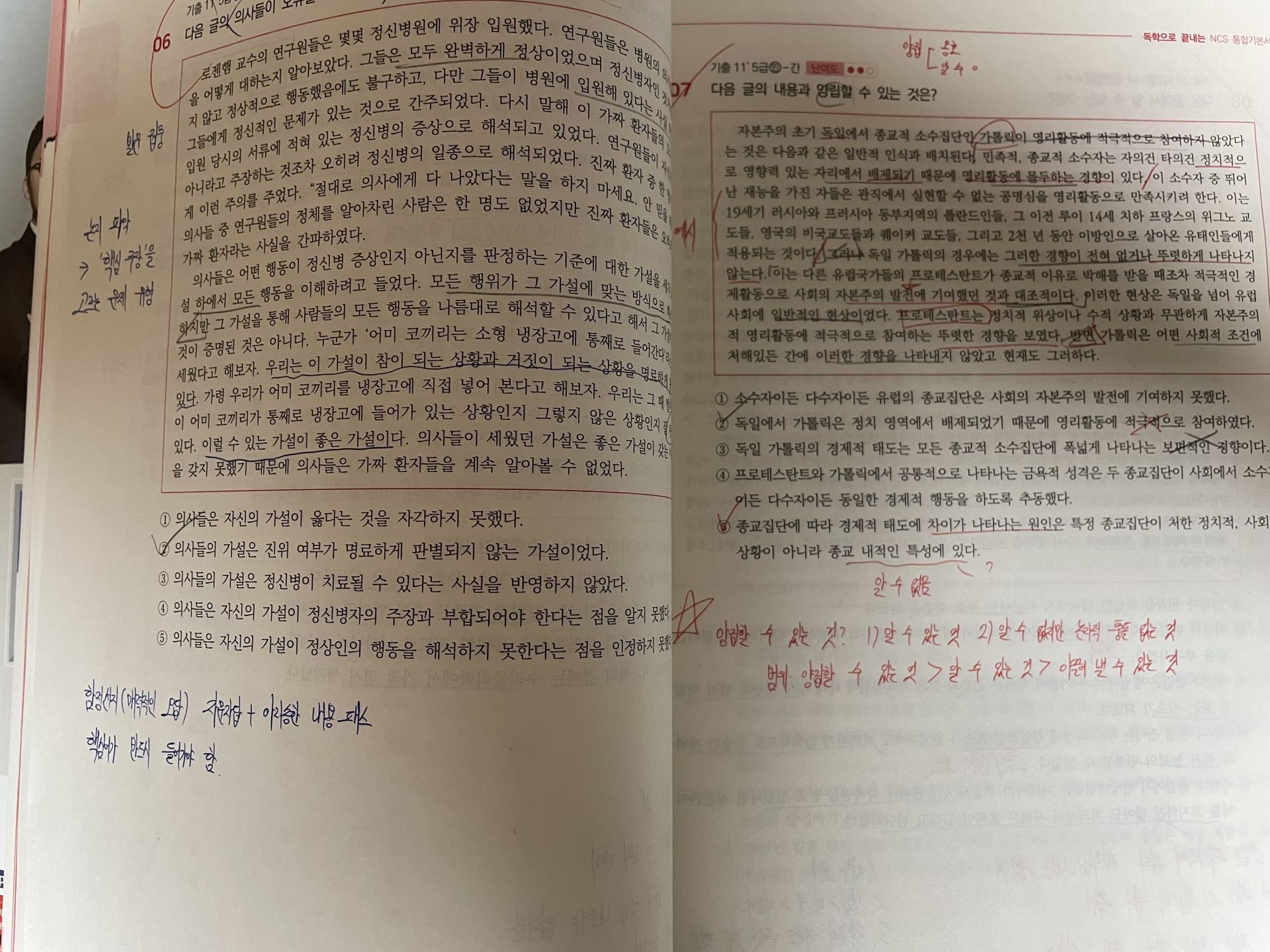 그러던 중에 스터디를 알게 되었습니다. 그렇게 스터디 시작 전 독끝 기본서 책을 사서 훑어보는데 타사책과는 다르게 모든 설명내용이 줄글이 이었습니다. 줄글로 읽으니까 내용에 대해 더 정확하고 자세하게 알 수 있었습니다. 그리고 이 책의 가장 장점은 해설이라는 생각이 들었습니다. 해설이 매우 상세해서 오답 노트하기도 좋았고 스킬도 습득 할 수 있어서 좋았습니다.
