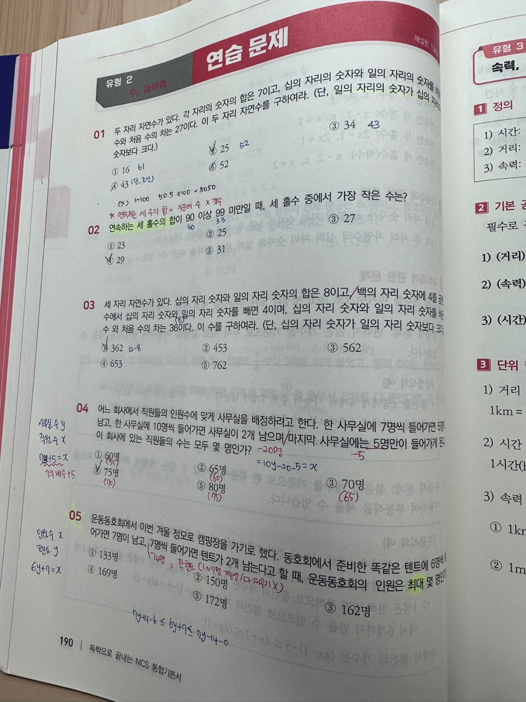 1. 응용수리 영역을 보니 중학교 때 보던 문제들이었다. 피셋엔 없는 유형인 데다 오랜만에 보니 반가워서 신나게 풀었다. 그런데 나는 이걸 20~30초 안에 풀어내야 하는 성인이다. 마찬가지로 내 경쟁자들은 모두 중학교를 졸업했다. 쉬운 문제를 더 쉽게 풀어야 한다. 정말이지 안타까운 일이 아닐 수 없다.