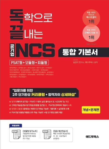 기초수학부터 ncs 통합기본서까지 두번의 강의를 들은 수강생입니다. 독학으로 ncs를 공부하기로 마음 먹은 후 인터넷 검색을 통해 후기가 좋던 에드투 공기업 ncs강의를 처음 알게되었습니다. 직장을 병행하며 ncs를 공부하면서 막막했는데 독끝 통합기본서는 저와 같이 처음 ncs를 접하는 독학 + 직장이나 학업을 병행하시는 분들에게 적극 추천드립니다. 저는 psat, 모듈형, 피듈형 용어도 처음 들어본 공기업 초보 취준생이었는데 독끝 통합기본서는 이 세가지 유형 모두 준비할 수 있는 목차로 구성되어 있습니다.