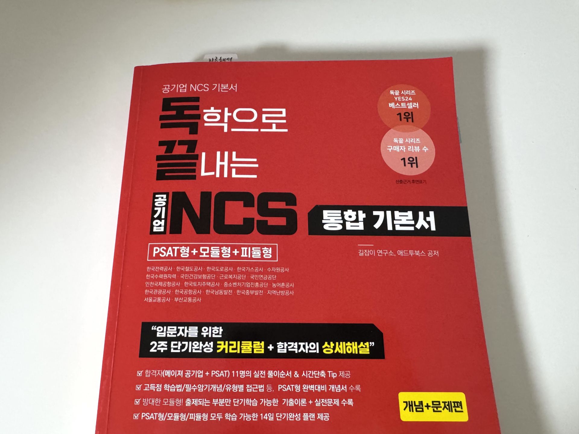독끝NCS 통합기본서 빨리 끝내고 곧이어 다른 교재 스터디도 신청할게요^_____^!!