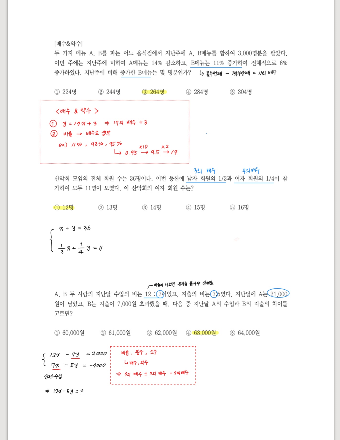 2. 다행히도 박수웅 강사님은 응용수리 파트에서도 갖다 떠멕여 주신다. 초반에 배수, 약수 개념으로 연립방정식 문제들 n초컷 내는 방법 설명해주실 때 '와 신세계네' 했다. 이건 교재엔 없고 강의를 들어야만 접할 수 있는 내용이다.