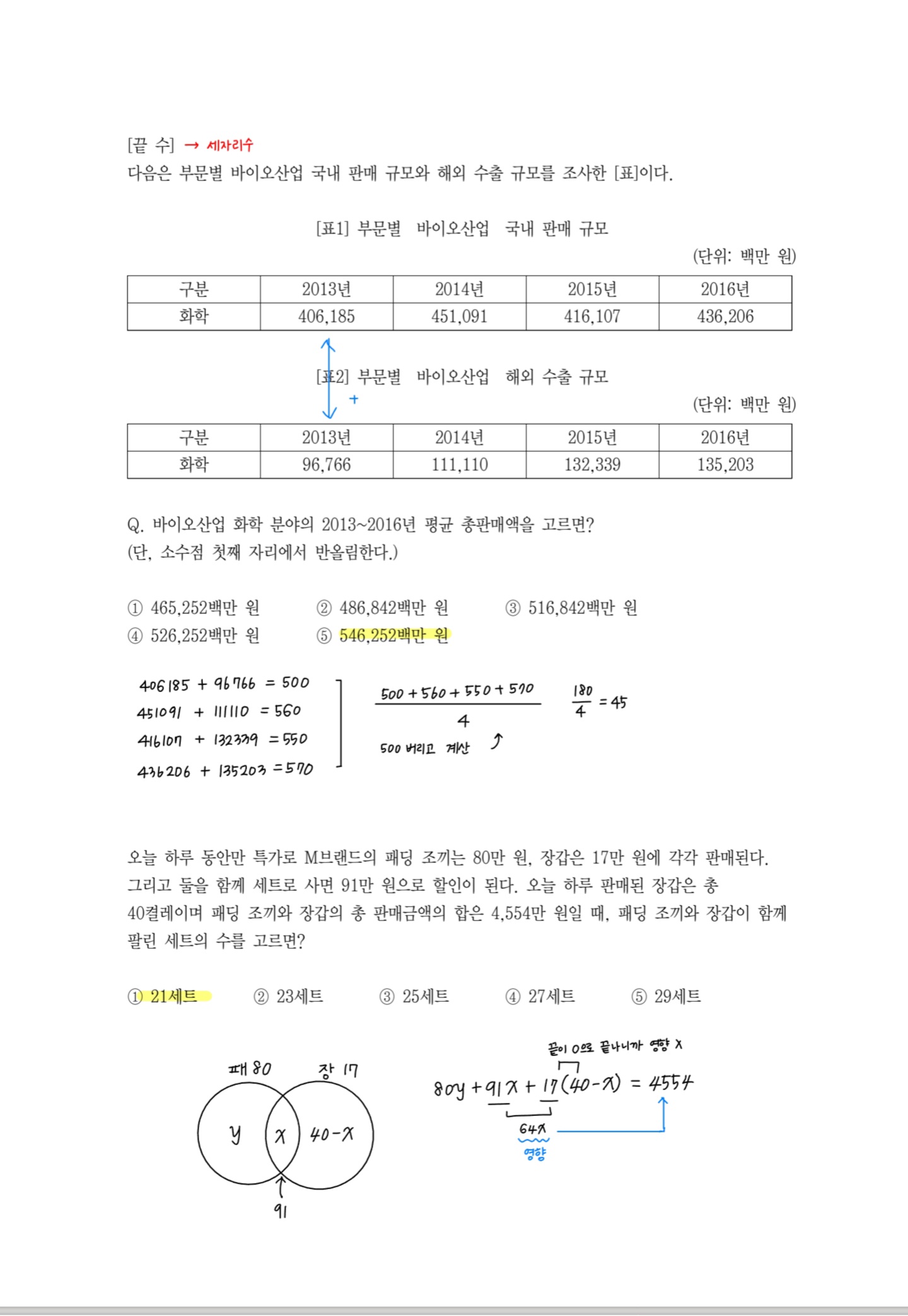 자료해석 같은 경우에 특히 도움을 많이 받았는데 실제 시험에서 요새도 많이 통할지 모르겠지만