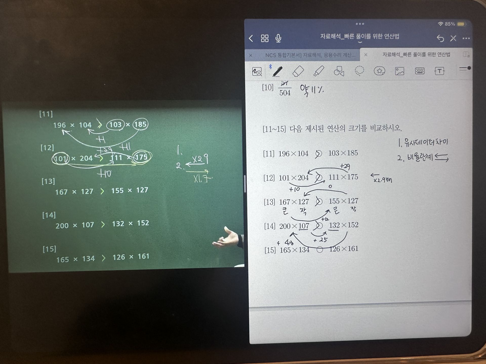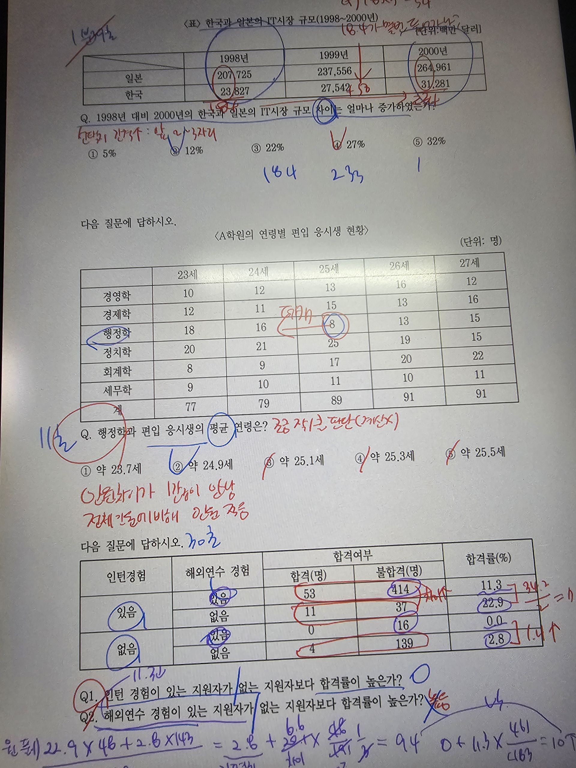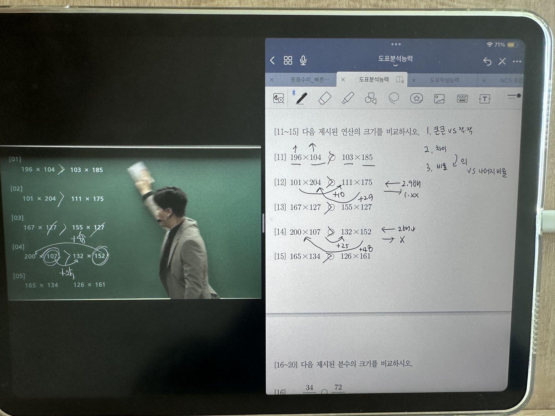 자료해석 파트도 점점 익숙해지고 있습니다. 처음에는 계산 속도가 느려서 풀이 시간이 오래 걸렸지만, 강의에서 배운 팁을 적용하면서 점차 속도가 붙고 있습니다. 특히, 자주 나오는 유형을 정리해두고 반복 연습하니 문제를 보면 어떻게 접근해야 할지 감이 잡히는 느낌이 들었습니다.