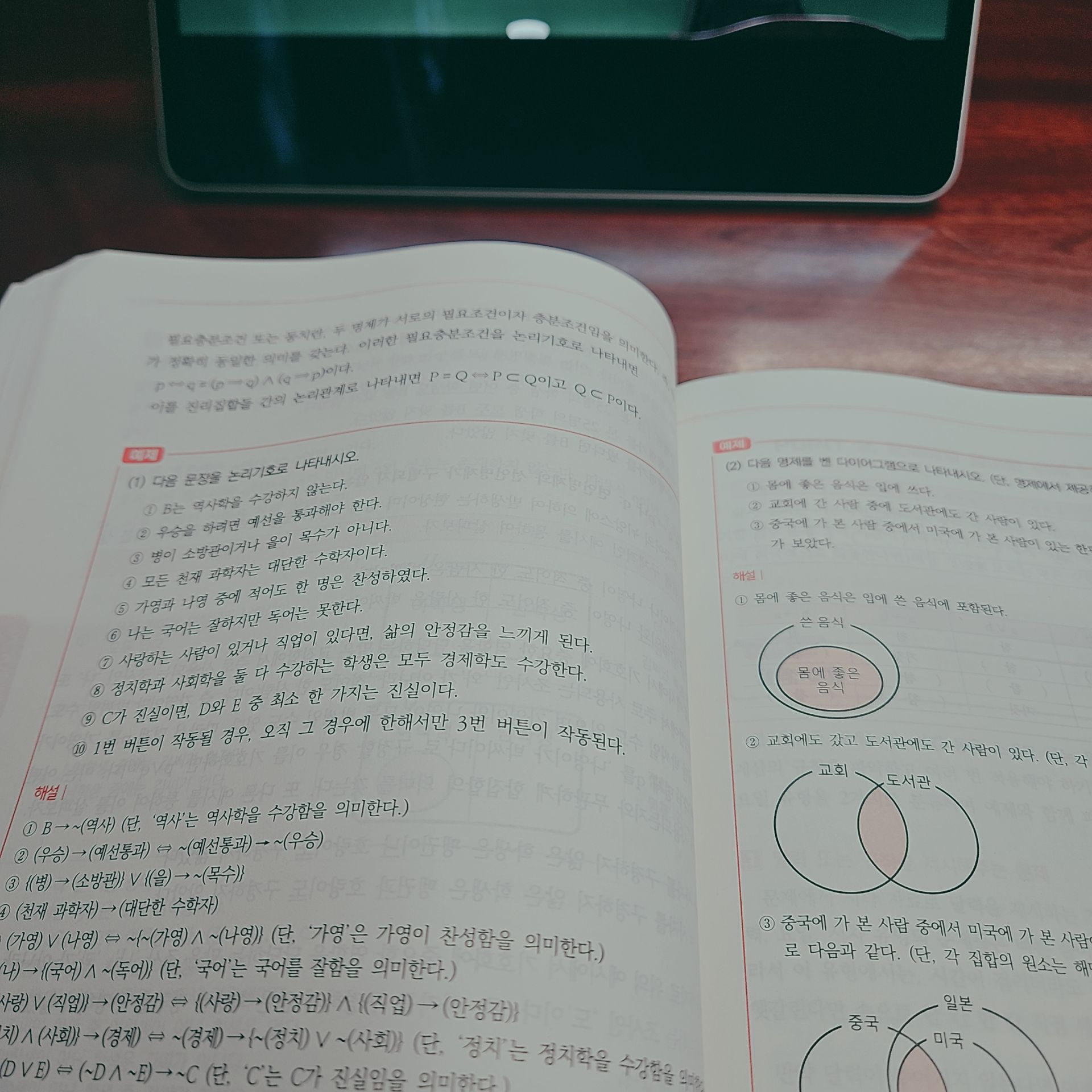 푸는 방법을 아예 몰랐습니다. 그랬는데 특히 명제문제 푸는 방법을 확실히 알게됫습니다. 역,이,대우 를 찾아서 식으로 간단히 표현하는 방법을 배웠습니다. 도움이 많이 되었습니다