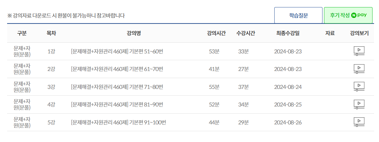 이것으로 독끝NCS 문제해결+자원관리 수강후기 마치겠습니다.