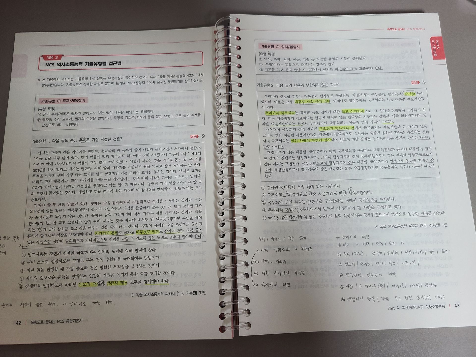 독끝 ncs 기본서는 psat 문제 풀이에 정말 필요한 내용으로 세부 유형까지 분류하여 기본서 학습 후 양치기 단계에 가서도 다시 들여다 볼만한 책이라 좋았습니다.