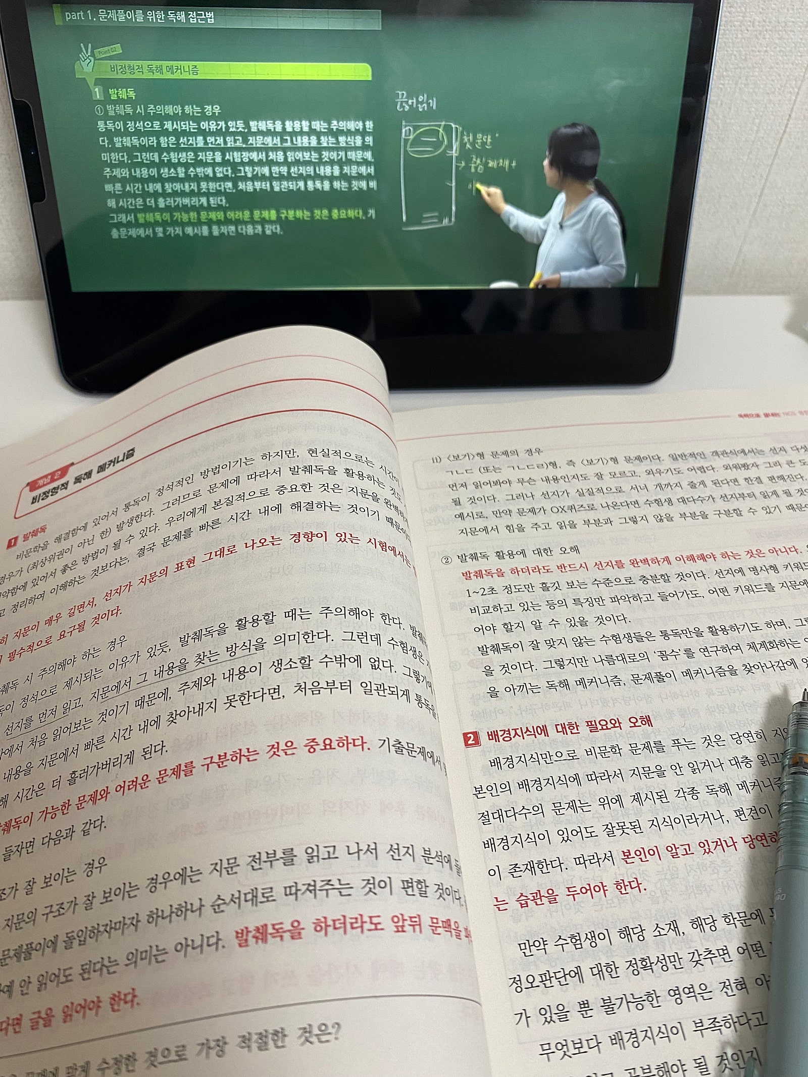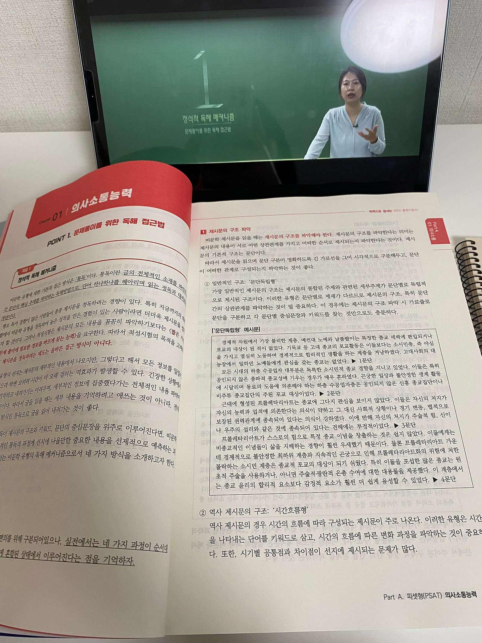 그리고 강의를 듣는데 이해도 더 잘되고 한 번더 머리 속에 각인 시킬 수 있어서 강의를 듣기 잘했다는 생각이 들었습니다. 그리고 특히 수리, 자료해석 부분에서는 어림산하는 방법을 읽히는데 강의 도움을 많이 받았습니다. 수리부분이 늘 약해서 문제를 풀 때 시간이 너무 오래걸렸었습니다. 그래서 수리는 포기해야되나 싶었는데 강의보면서 계산하는 방법을 다시 익히고 차근차근 하니까 그 전보다는 훨 빨라졌습니다. 아직 더 많이 노력해서 학습해야 강사님께서 말씀하신 시간이 걸릴거 같긴하지만 예전에 비하면 많은 발전이라고 생각합니다.