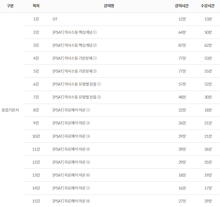 어려웠던 psat유형 중 의사소통과 자료해석 부분을 수강했습니다.