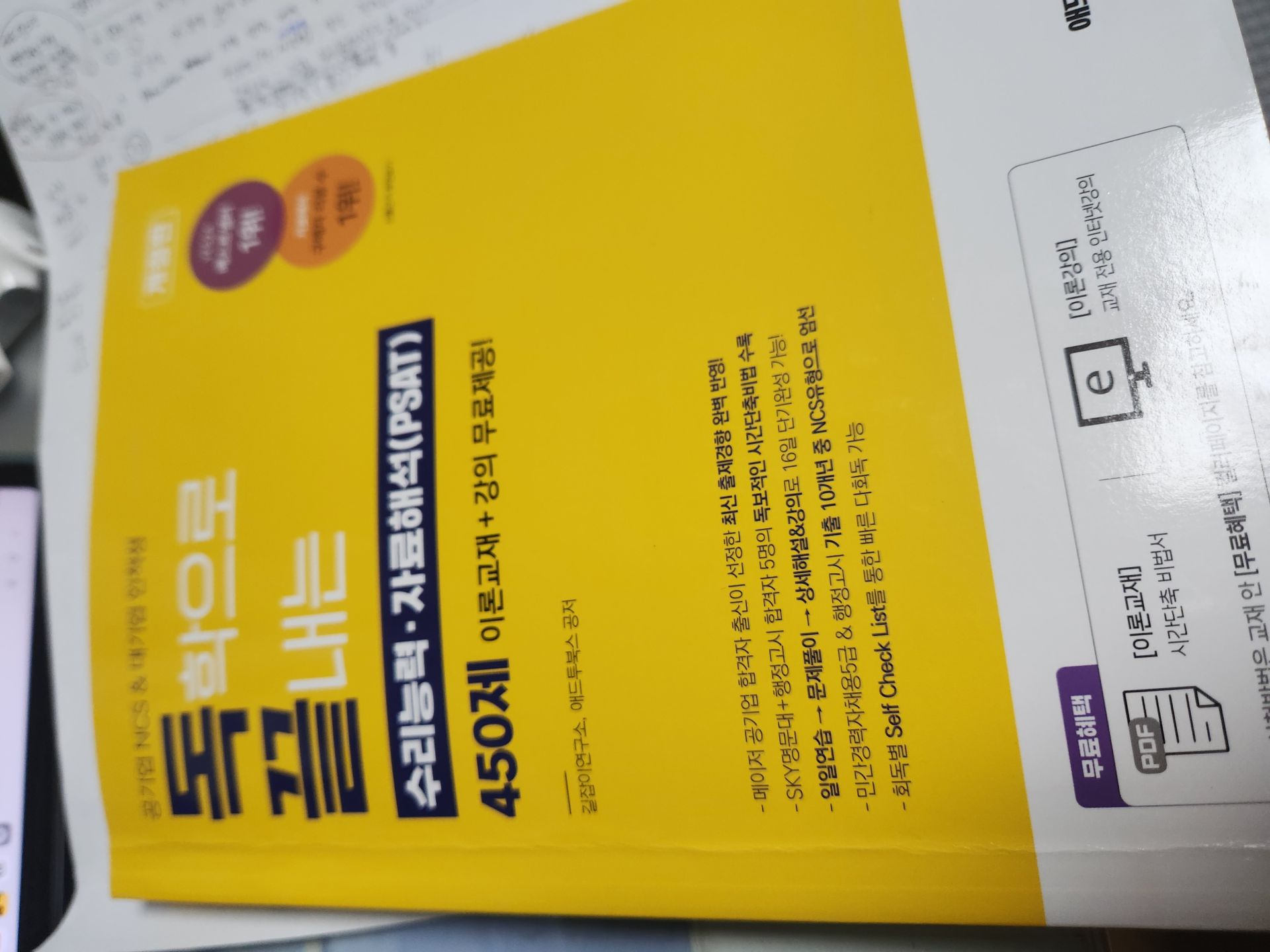 애드투에서 진행한 기초NCS수리 및 의사소통 강의를 완강한 후 실전 문제 풀이로 돌입하였습니다.