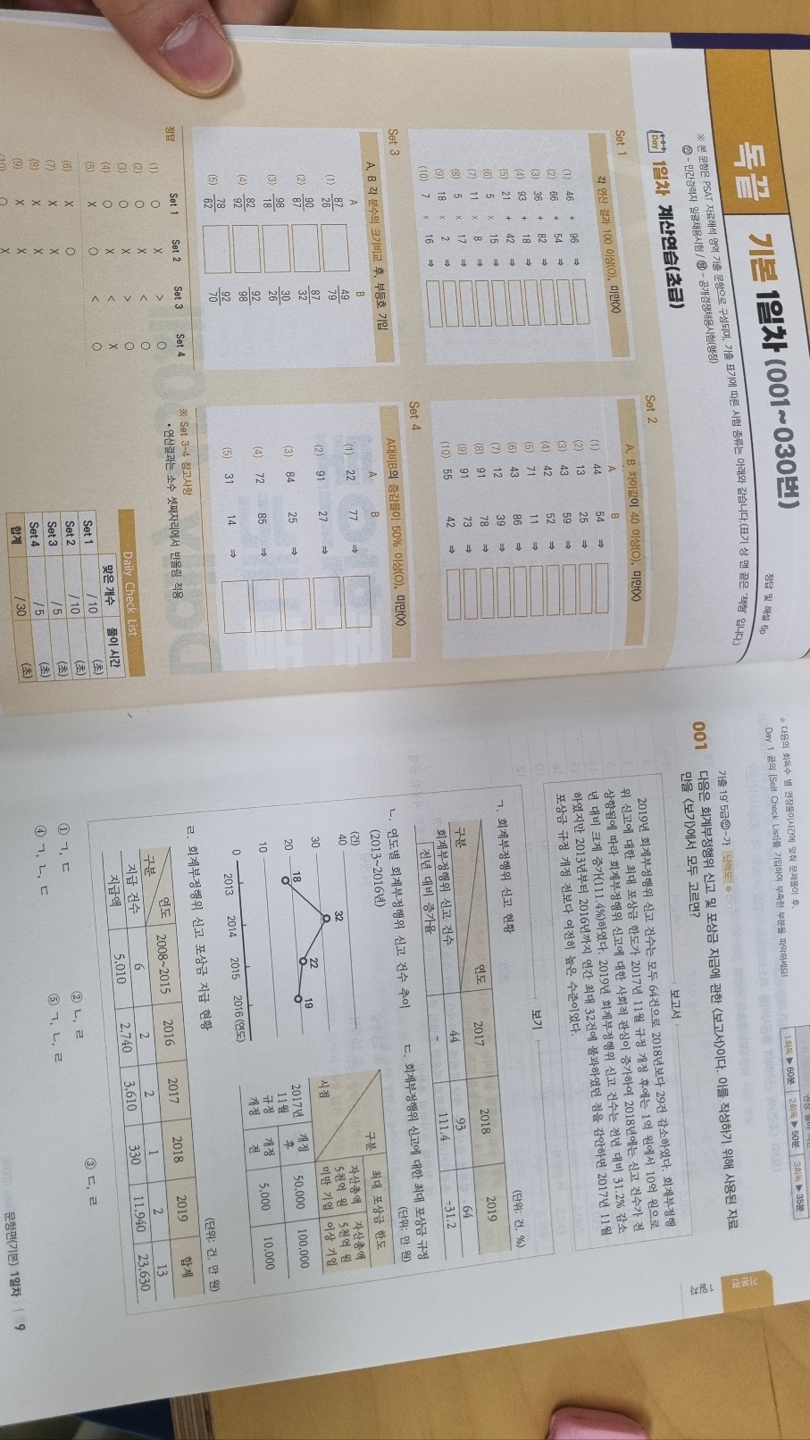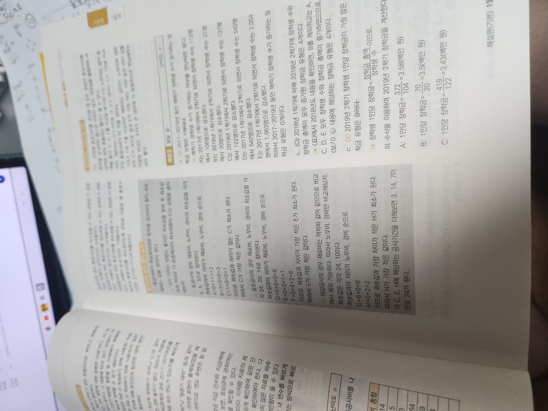 일단 자료해석 영역은 다양한 유형의 문제들이 있어 많은 문제들을 접하는 경험을 쌓을 수 있었습니다. 그리고 문제 풀이에 적용할 수 있는 방법이나 확률표 등 문제에 적용할 수 있는 요소들이 해설집에 잘 나와있어서 문제에 적용하기 좋았습니다. 또한 문제지 하루치 분량을 풀기 전에 있는 계산문제들을 통해서 간단한 워밍업을 하고 문제를 푸는 습관이 정말 도움이 많이 되었습니다.