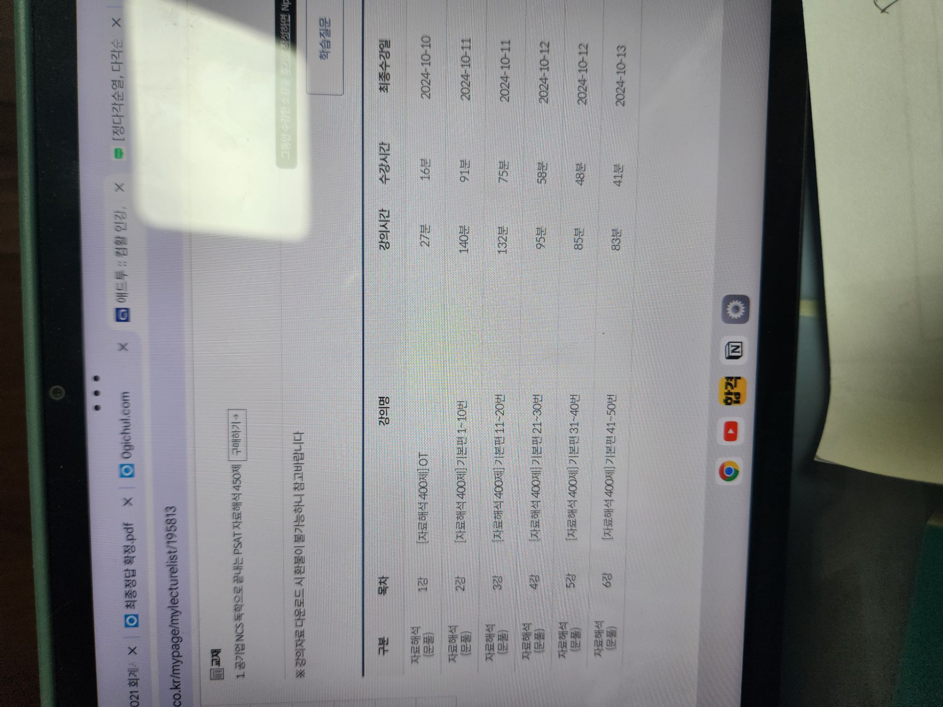 어려웠던 psat유형 중 의사소통과 자료해석 부분을 수강했습니다.