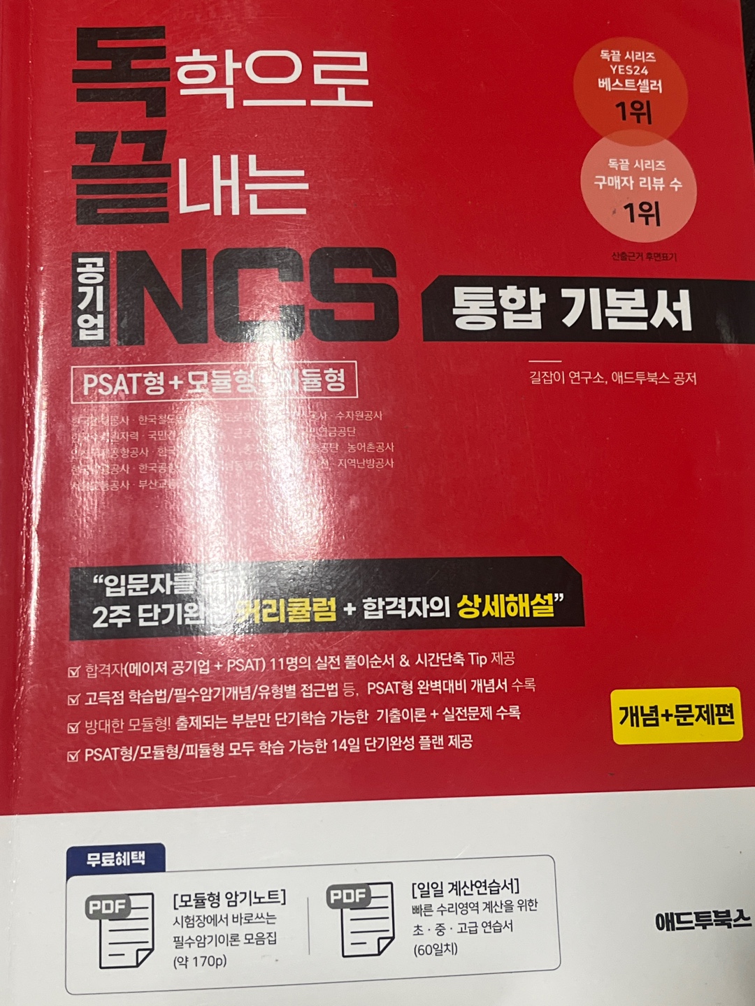 독끝NCS 통합기본서 빨리 끝내고 곧이어 다른 교재 스터디도 신청할게요^_____^!!