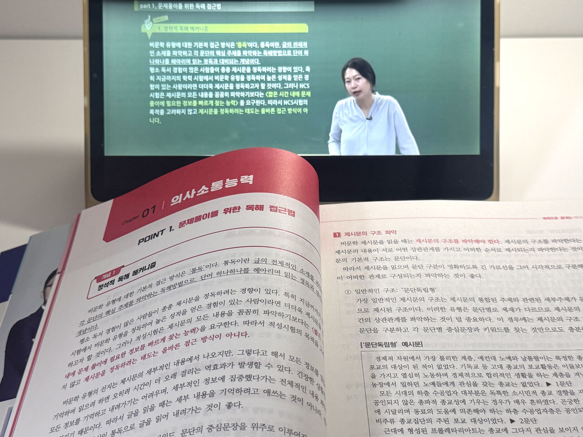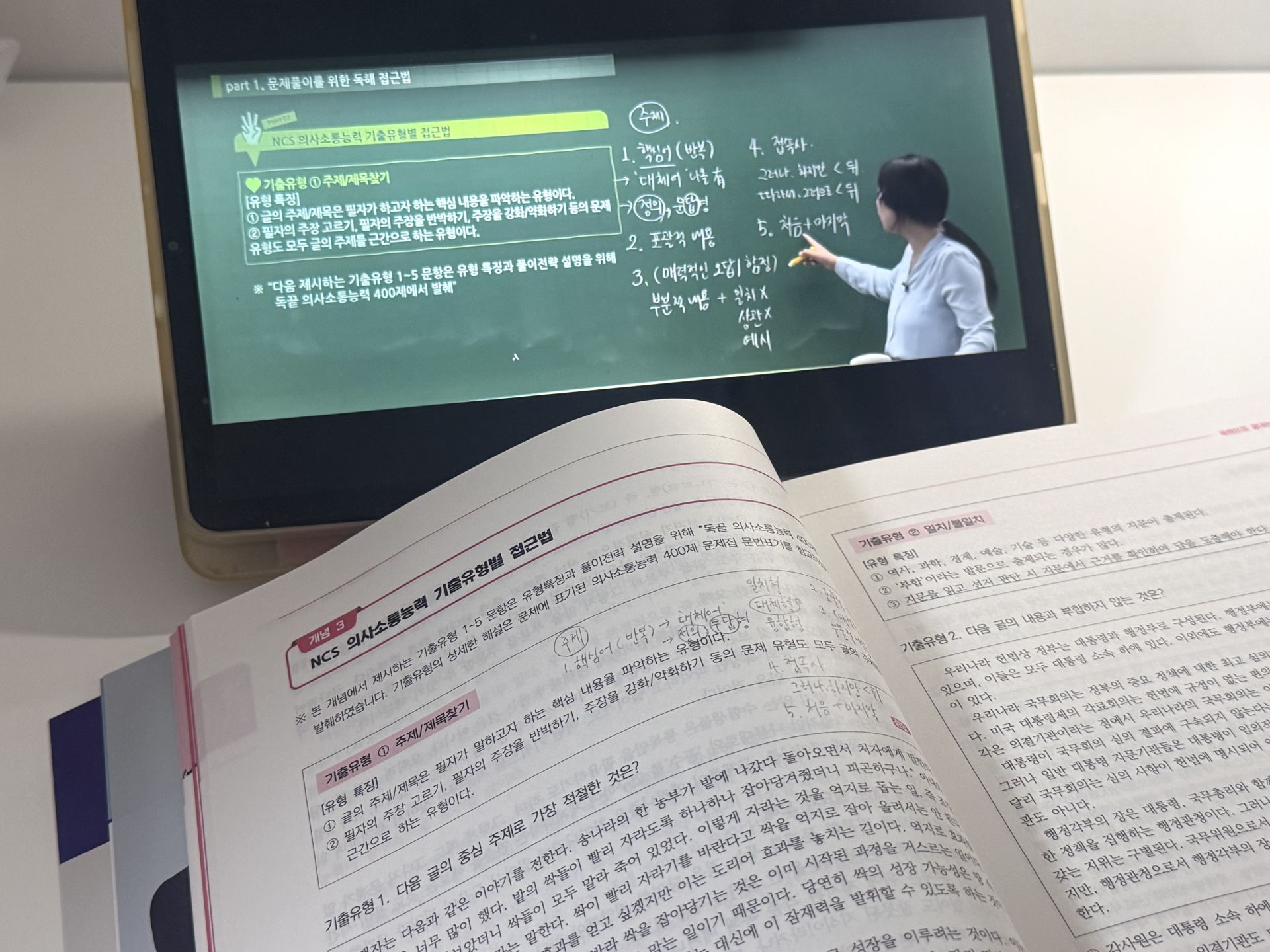 NCS는 단순히 문제를 많이 푸는 것이 아니라 유형별 풀이법을 익혀 시간을 단축하는 것이 중요하다고 들었는데, 강의를 통해 그 의미를 확실히 이해하게 되었습니다. 의사소통 영역에서는 강사님께서 속독법과 문맥을 이해하는 방법을 알려주셨고, 자료해석 영역에서는 자주 등장하는 비율과 필수 암기 사항을 자세히 설명해 주셨습니다.