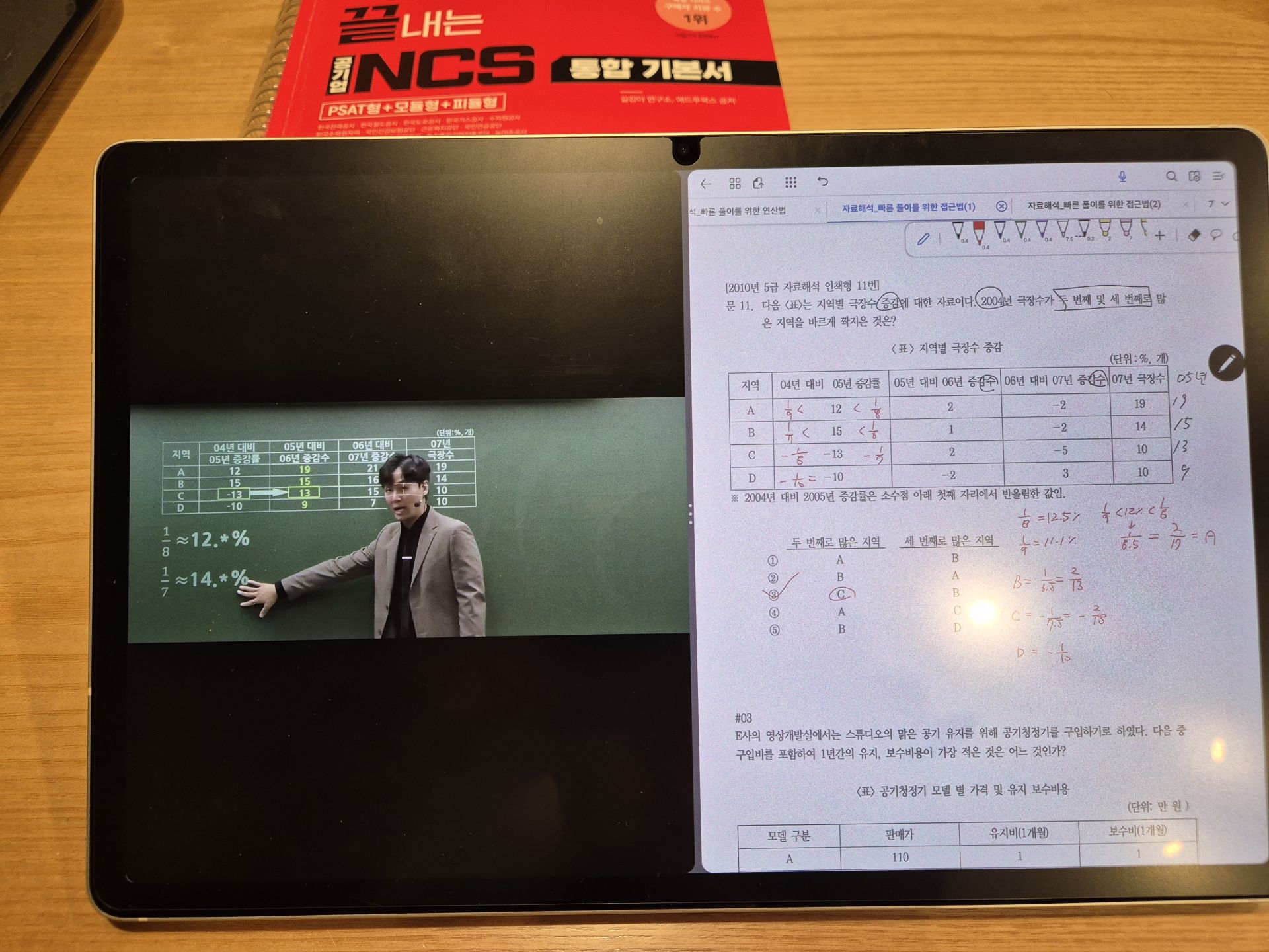 자료해석 파트도 혼자 문제풀이를 진행한 뒤 박수웅 강사님의 강의를 들으며 복습하는 방식으로 공부를 진행했습니다.