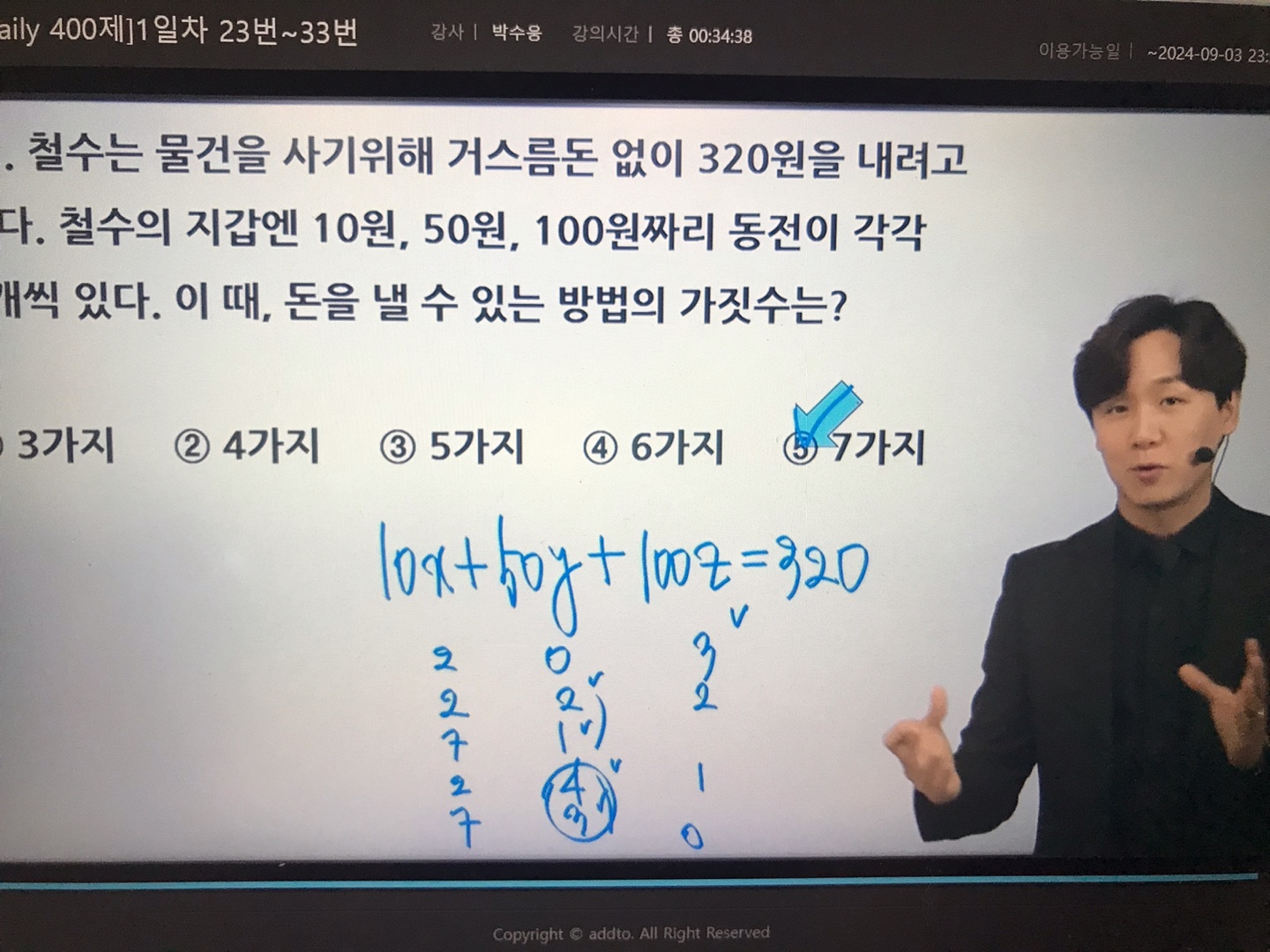 2. 다행히도 박수웅 강사님은 응용수리 파트에서도 갖다 떠멕여 주신다. 초반에 배수, 약수 개념으로 연립방정식 문제들 n초컷 내는 방법 설명해주실 때 '와 신세계네' 했다. 이건 교재엔 없고 강의를 들어야만 접할 수 있는 내용이다.