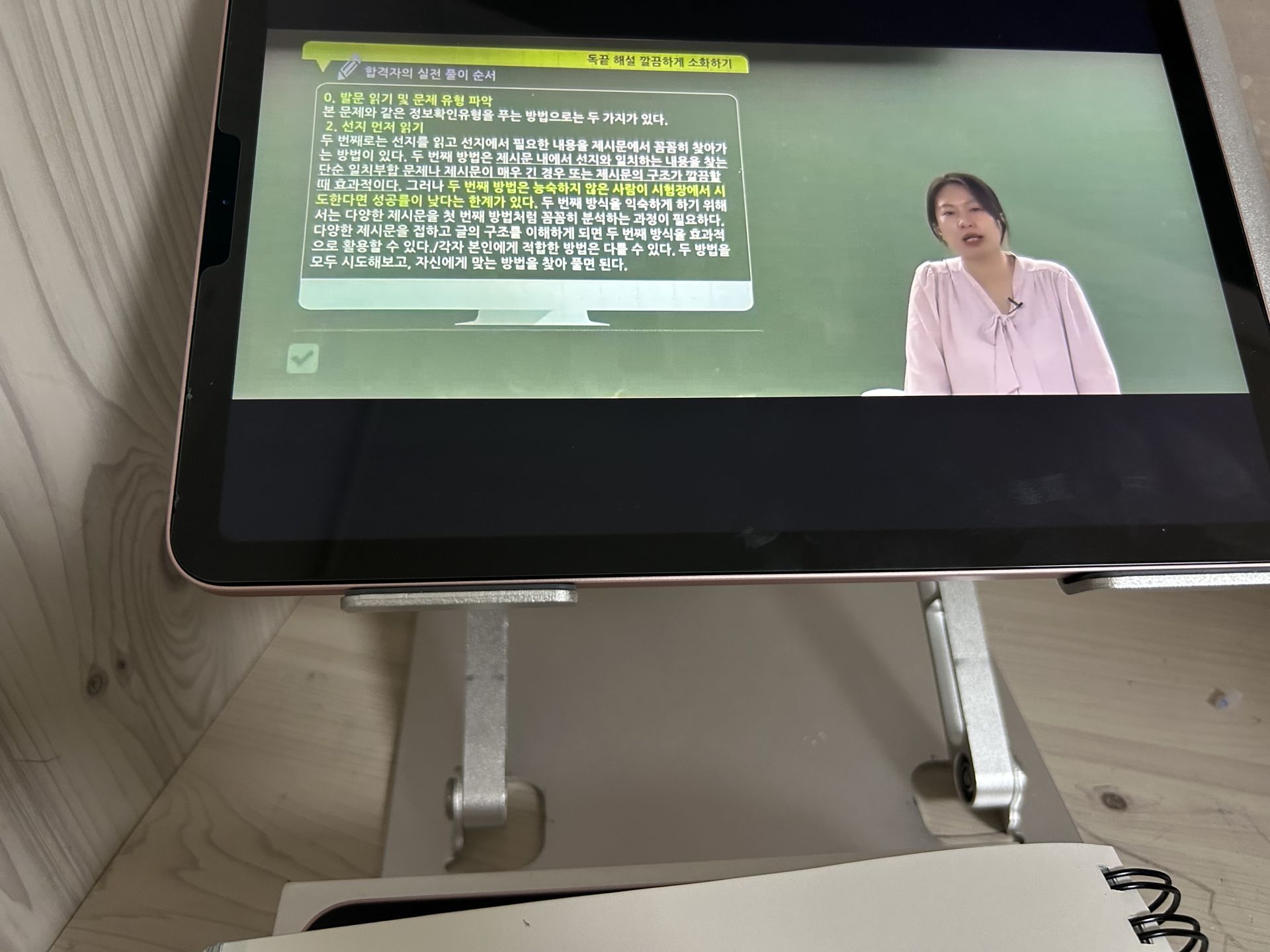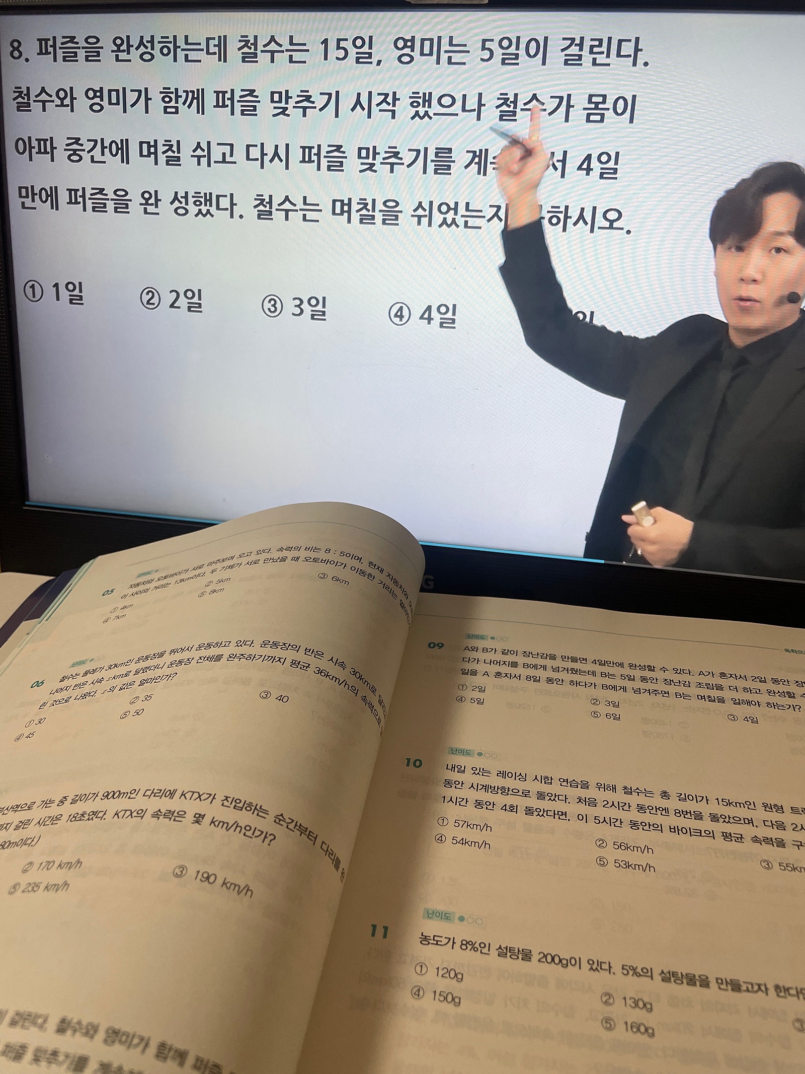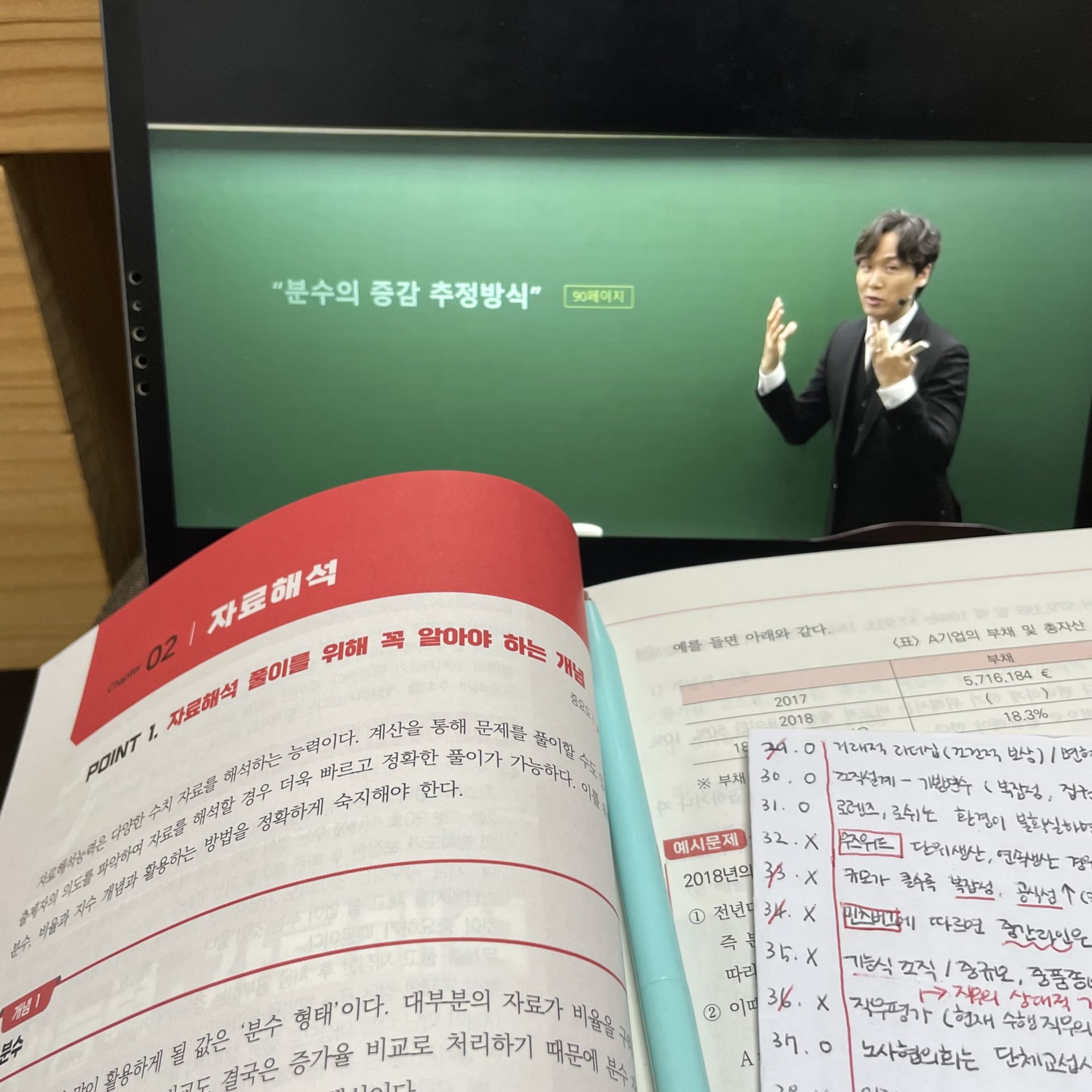 그리고 강의를 듣는데 이해도 더 잘되고 한 번더 머리 속에 각인 시킬 수 있어서 강의를 듣기 잘했다는 생각이 들었습니다. 그리고 특히 수리, 자료해석 부분에서는 어림산하는 방법을 읽히는데 강의 도움을 많이 받았습니다. 수리부분이 늘 약해서 문제를 풀 때 시간이 너무 오래걸렸었습니다. 그래서 수리는 포기해야되나 싶었는데 강의보면서 계산하는 방법을 다시 익히고 차근차근 하니까 그 전보다는 훨 빨라졌습니다. 아직 더 많이 노력해서 학습해야 강사님께서 말씀하신 시간이 걸릴거 같긴하지만 예전에 비하면 많은 발전이라고 생각합니다.