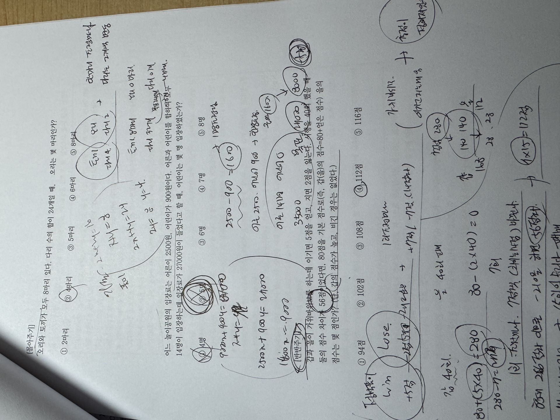 1. 응용수리 영역을 보니 중학교 때 보던 문제들이었다. 피셋엔 없는 유형인 데다 오랜만에 보니 반가워서 신나게 풀었다. 그런데 나는 이걸 20~30초 안에 풀어내야 하는 성인이다. 마찬가지로 내 경쟁자들은 모두 중학교를 졸업했다. 쉬운 문제를 더 쉽게 풀어야 한다. 정말이지 안타까운 일이 아닐 수 없다.