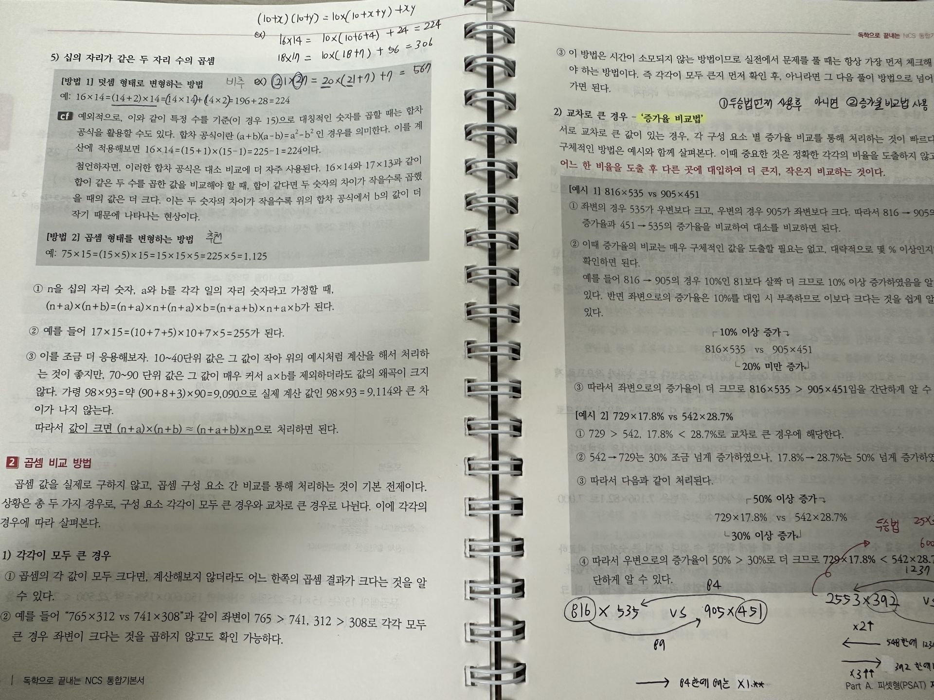둘째, 박수웅 강사님의 설명이 몹시 상세합니다. 스터디를 통해 무료로 제공받았지만, 역시 무료로 듣기에는 아깝습니다. 피셋을 처음 공부하던 시절 문제풀이에 컴팩트한 연산법을 익히느라 고생하곤 했습니다. 강의를 들어도 수강생 전부가 다 이해할 거라는 듯 뭉뚱그려져 지나갔고, 강의 교재를 사도 강의 없이는 효율적으로 풀이할 수 없게끔 제작된 교재가 많이 접하곤 했습니다. 그런데 박수웅 강사님께서는 수의 대소비교를 아주 기초부터 제대로 떠 먹여 주십니다. 덕분에 네이버 블로그 등 여러 사이트를 전전하며 계산 식이나 풀이 시간을 어떻게 줄일까 고민하지 않아도 되게 되었습니다. 게다가 독끝 교재와 강사님 설명을 함께 하니 기초 학습도, 연습도 계획된 시간 내에 이뤄져서 좋았습니다.