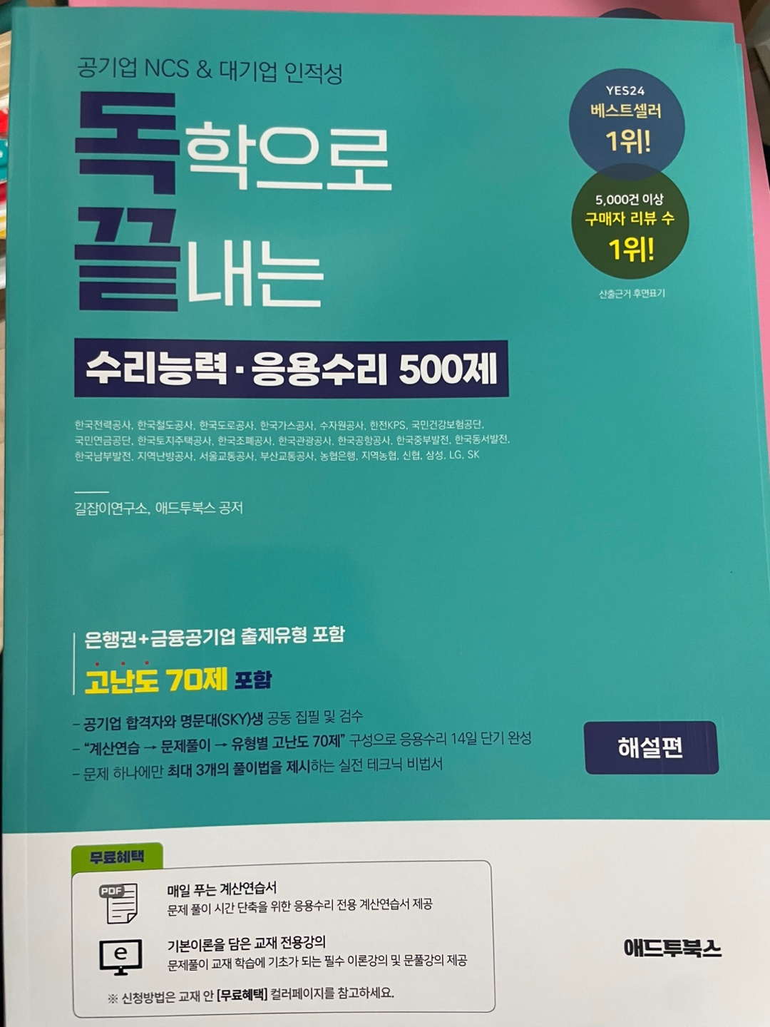 전수환카페를 통해 좋은 기회에 무료강의를 들을 수 있어서 신청해서 듣게 되었습니다. Ncs에 대해 잘 몰랐기에 강의를 너무 듣고싶었고, 강ㅇ의를 들어보니 선생님들의 쉬운 설명과 문제마다의 풀이방법을 여러가지 방법으로 설명해주셔서 이해하기 쉬었고 다른 문제를 풀었을 때도 적용해볼 수 있었습니다!앞으로도 혼자 문제를 풀아나가는데에 정말 도ㅗ움이 많이 된 거 같고 독끝 시리즈 문제집을 구매해서 더 열심히 공부할 예정입니다 감사합니다!