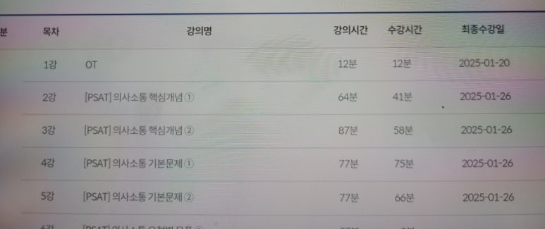 어려웠던 psat유형 중 의사소통과 자료해석 부분을 수강했습니다.