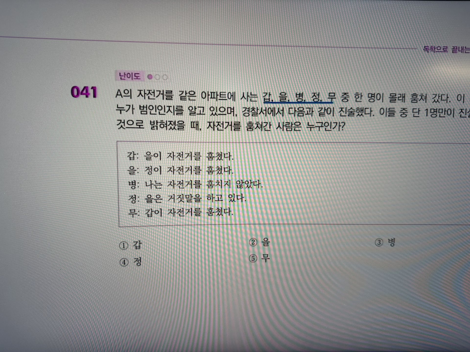 1. 응용수리 영역을 보니 중학교 때 보던 문제들이었다. 피셋엔 없는 유형인 데다 오랜만에 보니 반가워서 신나게 풀었다. 그런데 나는 이걸 20~30초 안에 풀어내야 하는 성인이다. 마찬가지로 내 경쟁자들은 모두 중학교를 졸업했다. 쉬운 문제를 더 쉽게 풀어야 한다. 정말이지 안타까운 일이 아닐 수 없다.