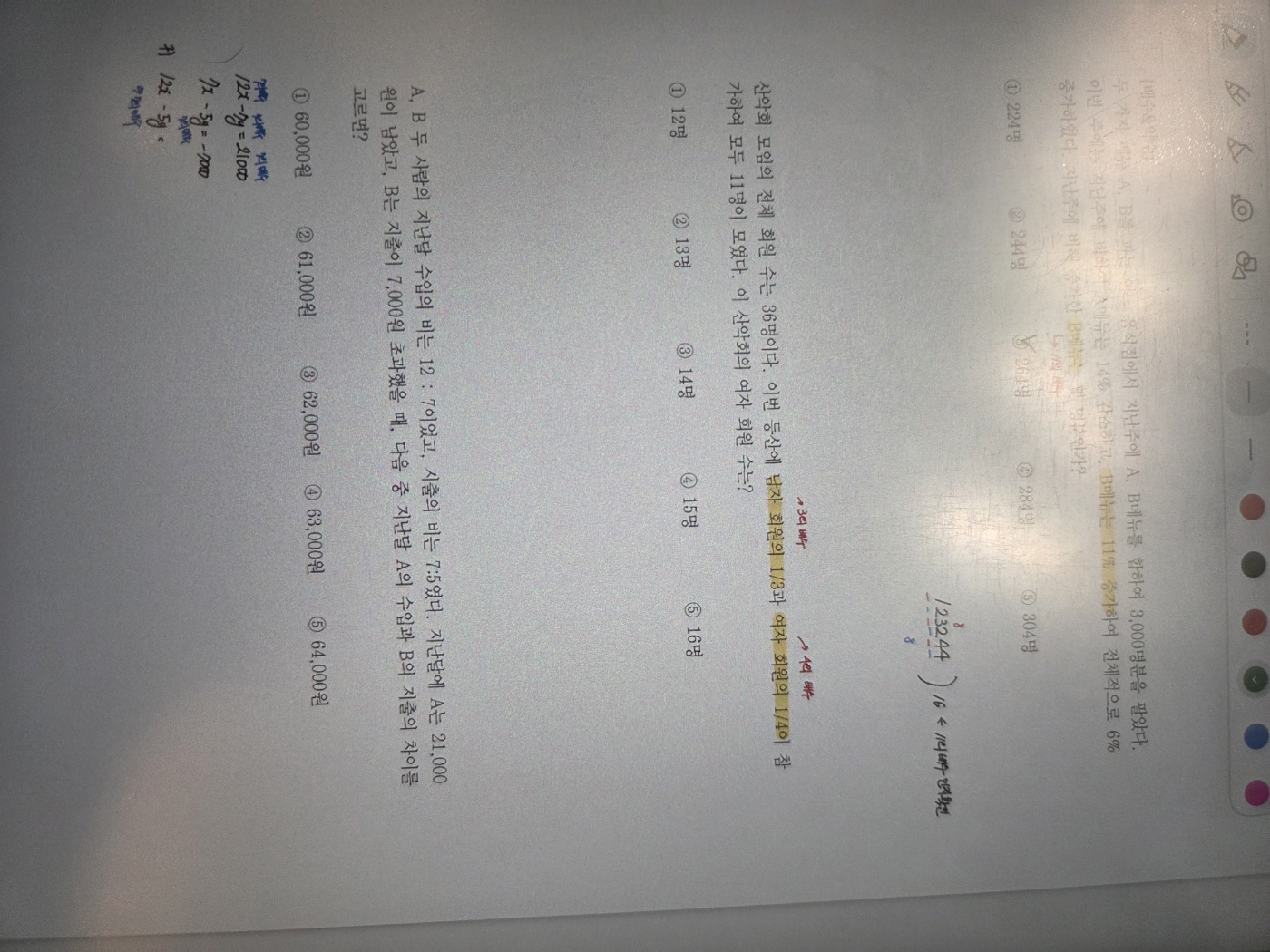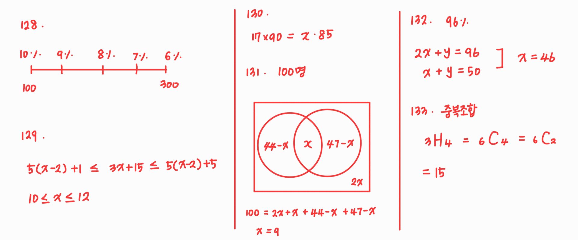 그리고 확률 파트 특히 조건부 확률 문제는 보면 바로 넘기는 문제였는데