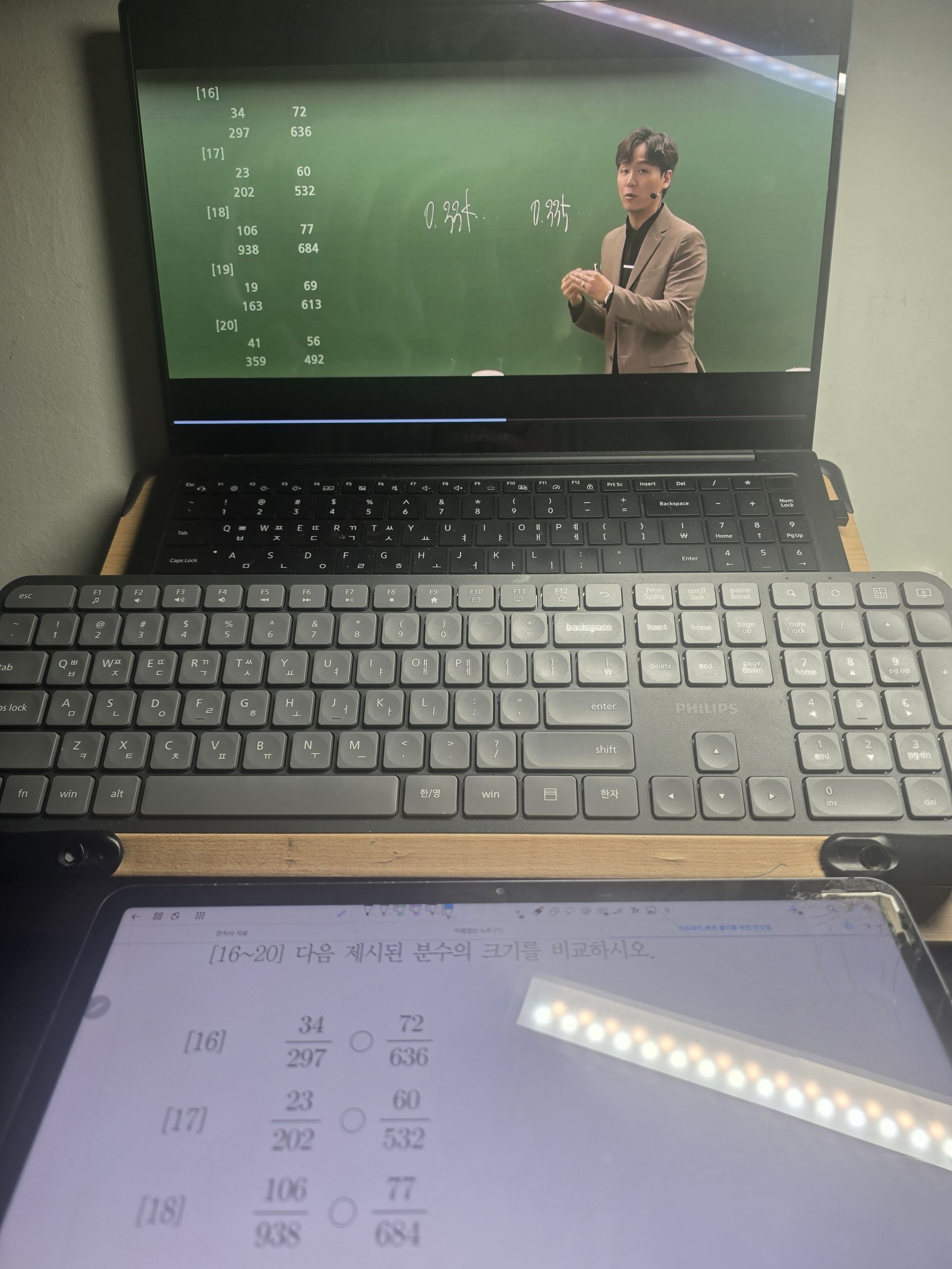 다시 풀어보라는 문제는 일시정지 하고 다시 풀어보았고 선생님 풀이법과 비교해보았습니다.