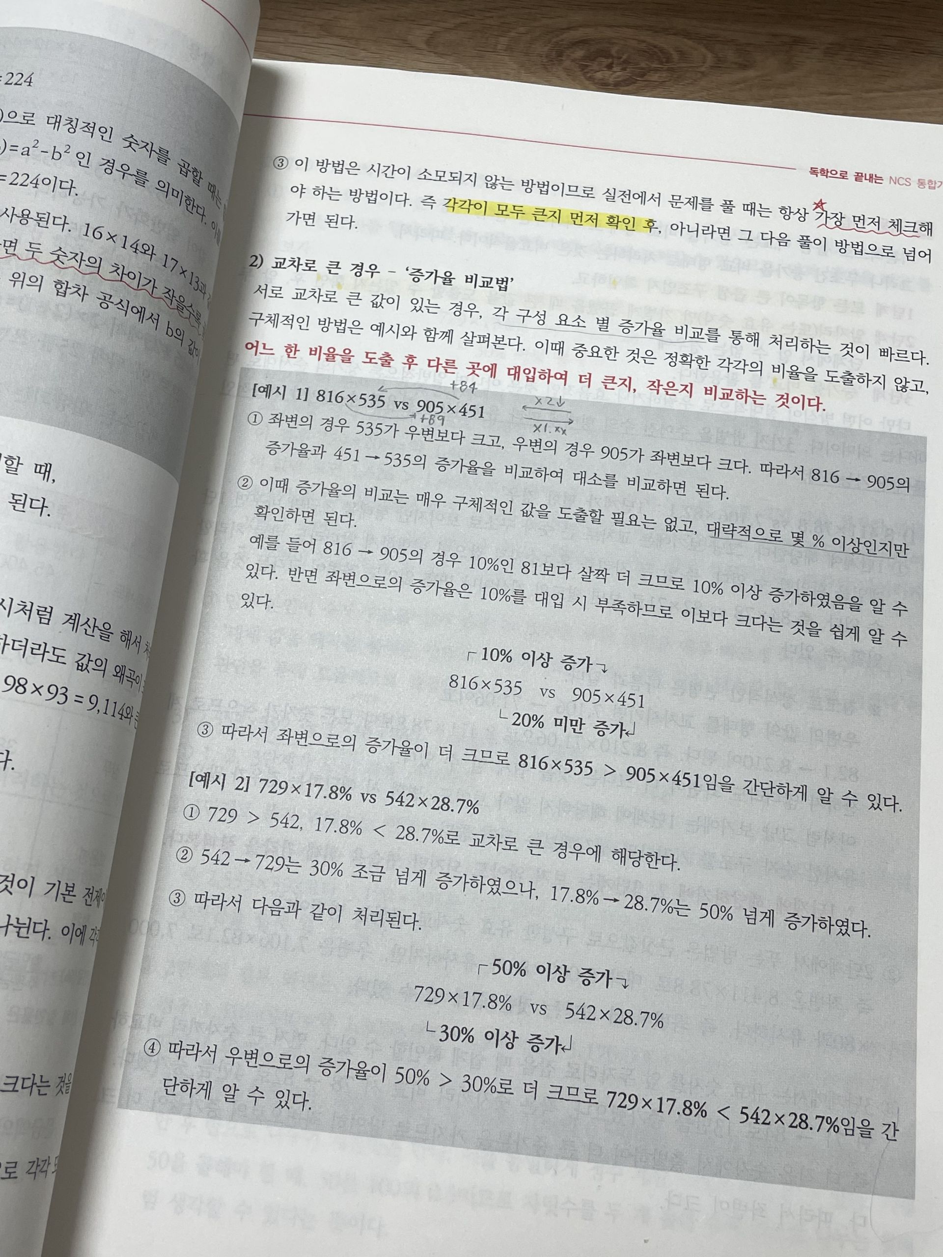 또, 기초 NCS부터 응용수리 파트까지 연결해서 설명해주셔서 좋았습니다. 저는 응용수리에서 특히 약했던 증감률, 거속시, 원가 및 이익금, 일 수 계산, 소금물 농도 유형을 빠르게 푸는 스킬을 배웠는데, 단순 공식 암기보다 “왜 이 방식이 더 빠른지”를 기준으로 풀이 흐름을 정리해주는 점이 도움이 됐습니다. 예를 들어 증감률은 불필요한 계산을 줄이는 변환 방식이 있었고, 거속시는 문제 조건을 정리하는 순서만 바꿔도 시간이 확 줄어드는 게 느껴졌어요.